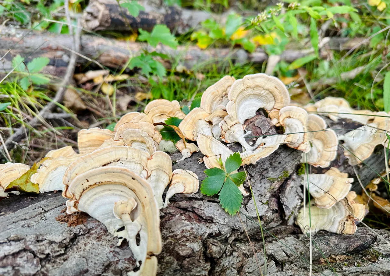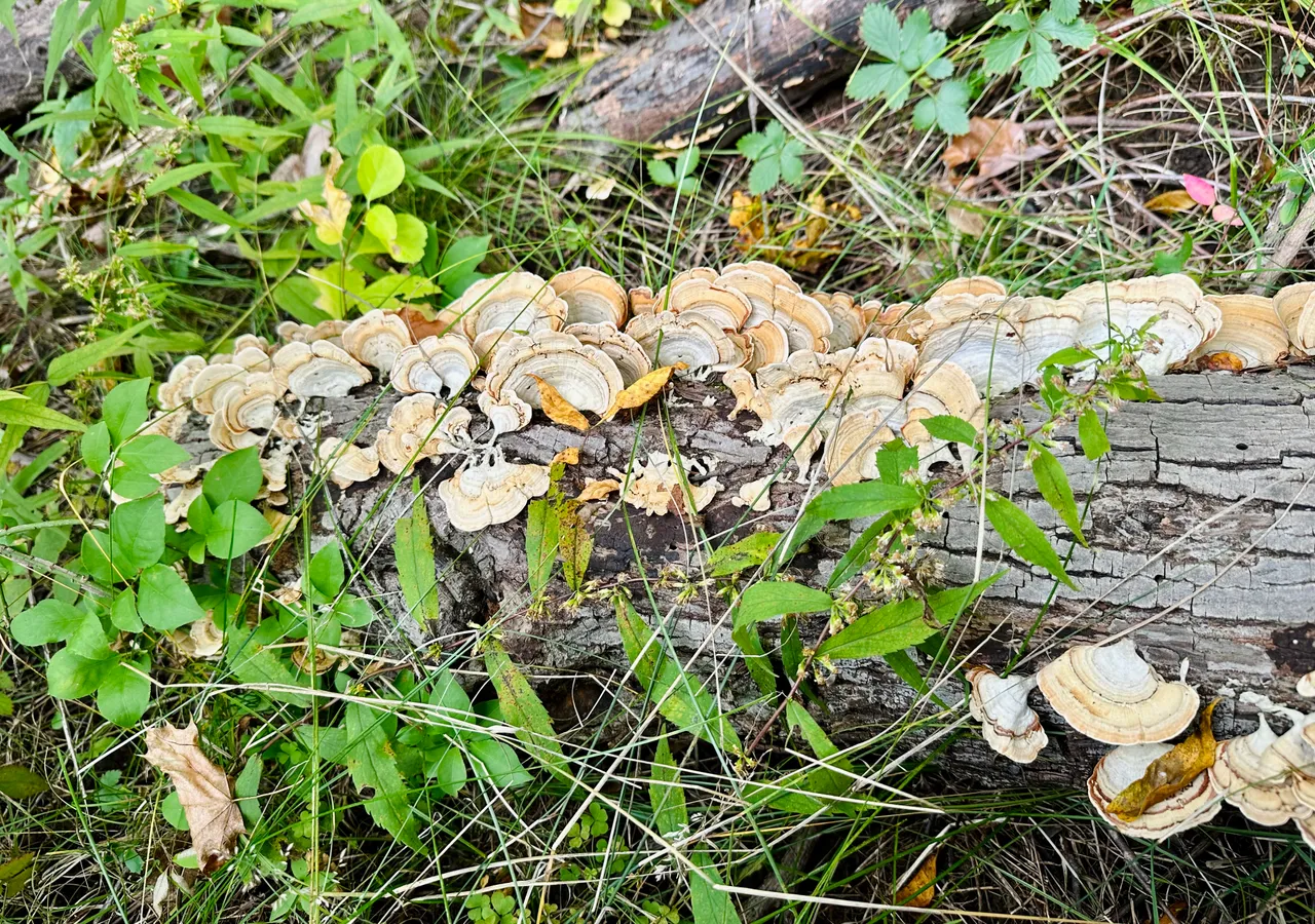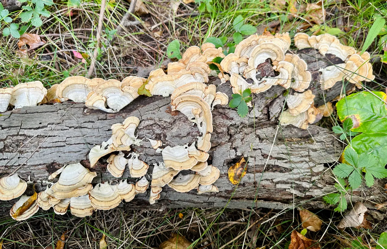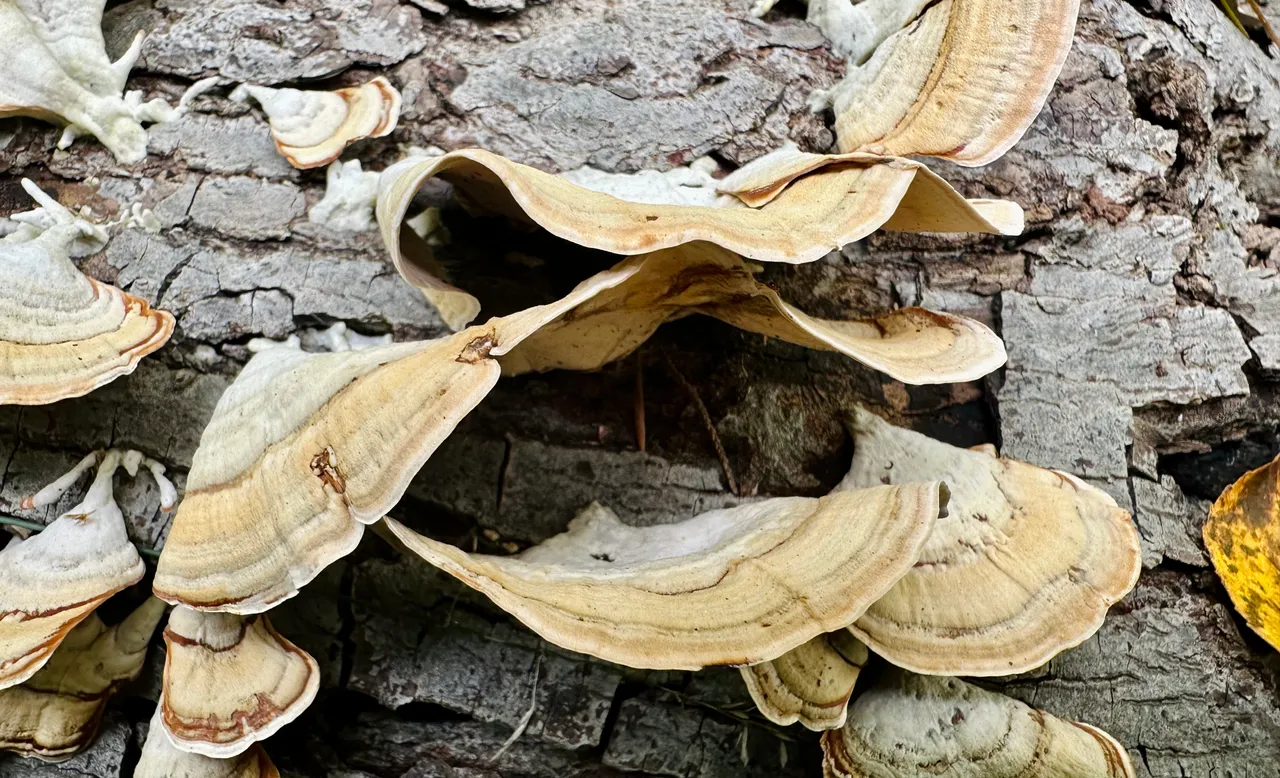 There was a tree laying on the ground just covered with these still intact and reasonably fresh mushrooms.