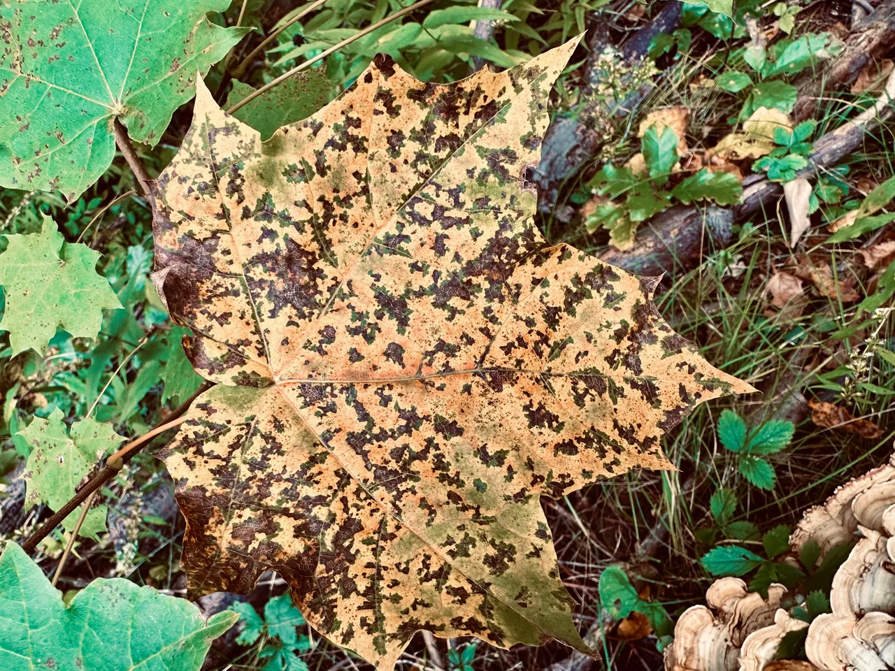 Next to this tree and the mushrooms / fungi I find this autumnal leave ๐๐ at this stage of our trip we havenโt seen much of the fall colours yet.