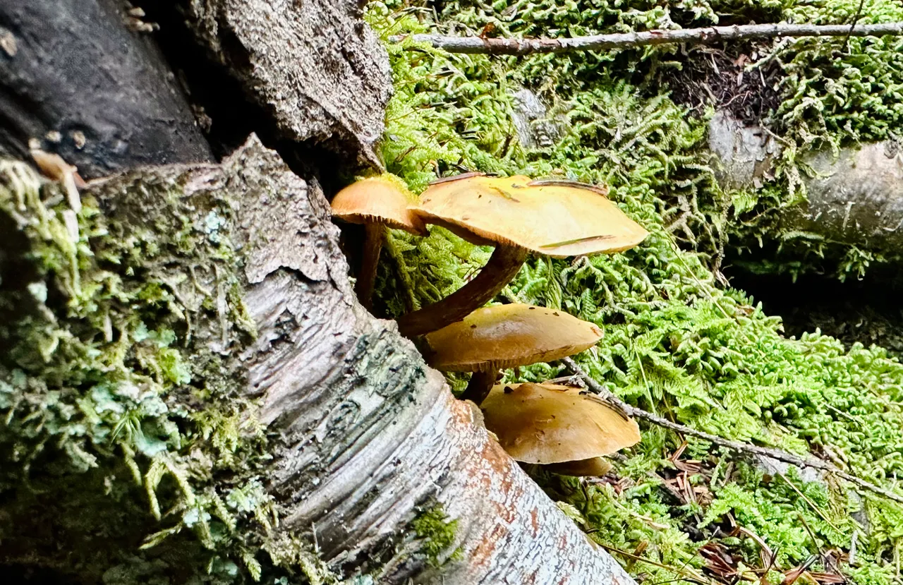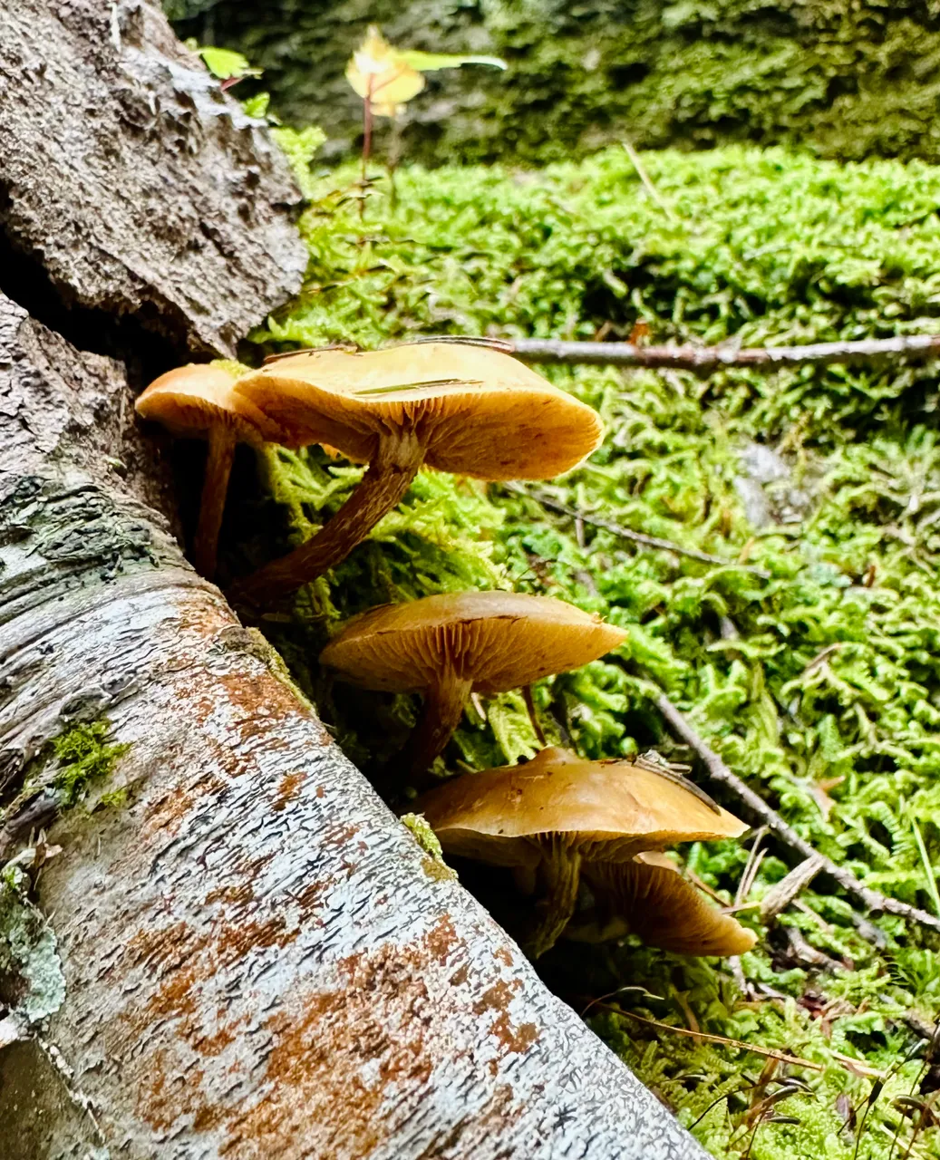 This little group of mushrooms was just perfectly placed. Lit up by the lightโฆ growing on a tree log ๐ชต surrounded by beautiful moss. They were reaching for the sky.