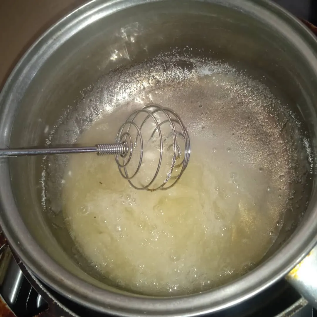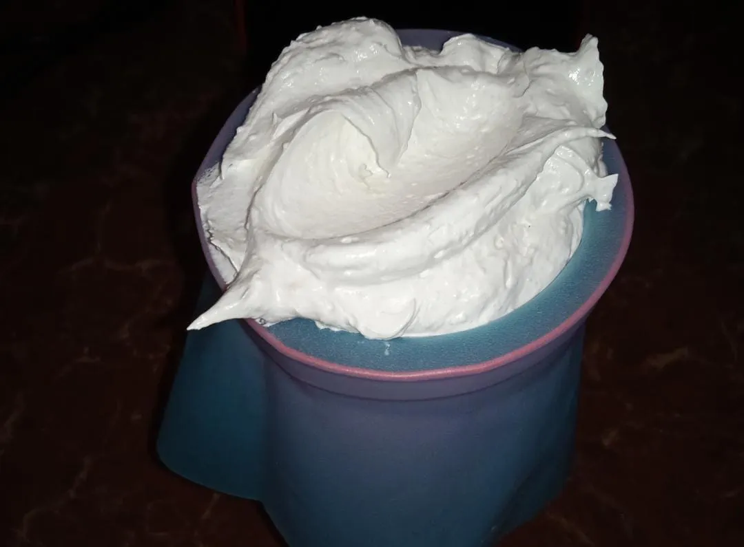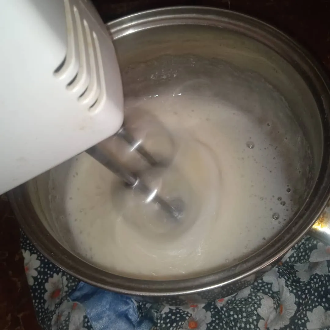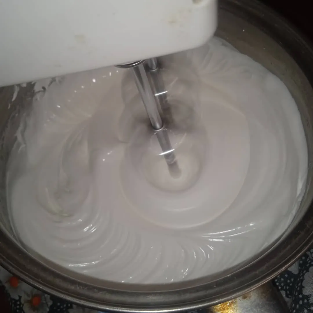 - After removing the mixture from the water bath, we transfer it to the counter, with an electric mixer, beat vigorously for about 5 minutes, and achieve the desired consistency that the mixture forms peaks and a smooth and firm airy texture.