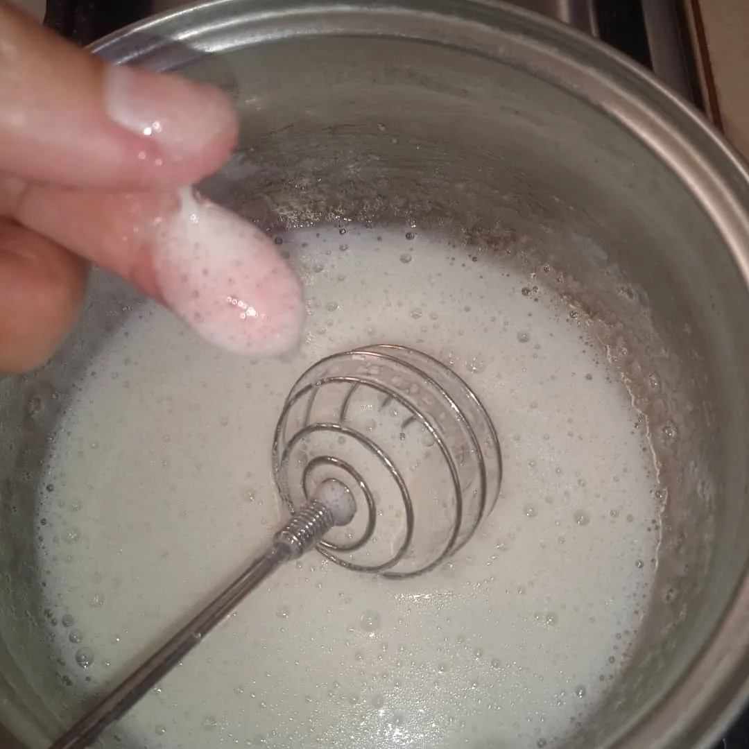 - Add the sugar to our egg whites and place in a bain-marie. This step is important to get the perfect consistency in our sighs. We beat non-stop, testing with our fingers making sure that each grain of sugar is completely dissolved.