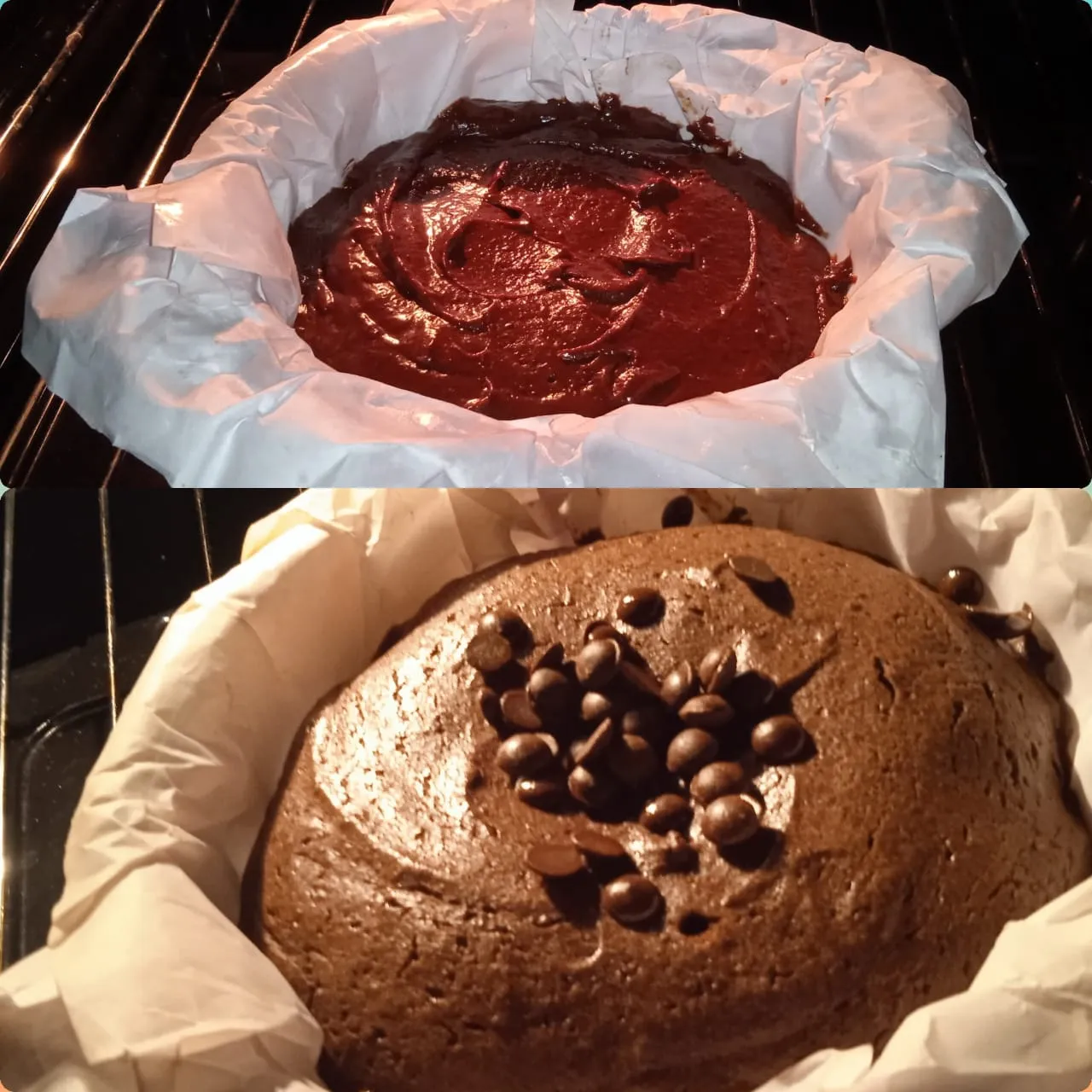 - Transfer the mixture to the pan and bake in the oven at 130 °C for 20 to 30 minutes. After this time, remove the brownie from the oven and add chocolate chips to decorate so that they sit in the pan and don't melt as much. Then, we return it to the oven for an additional 5 minutes and lower the flame.