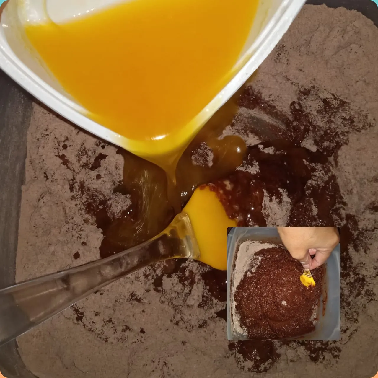 - Add the oil to soften the brownie, and finally, add the vanilla essence.