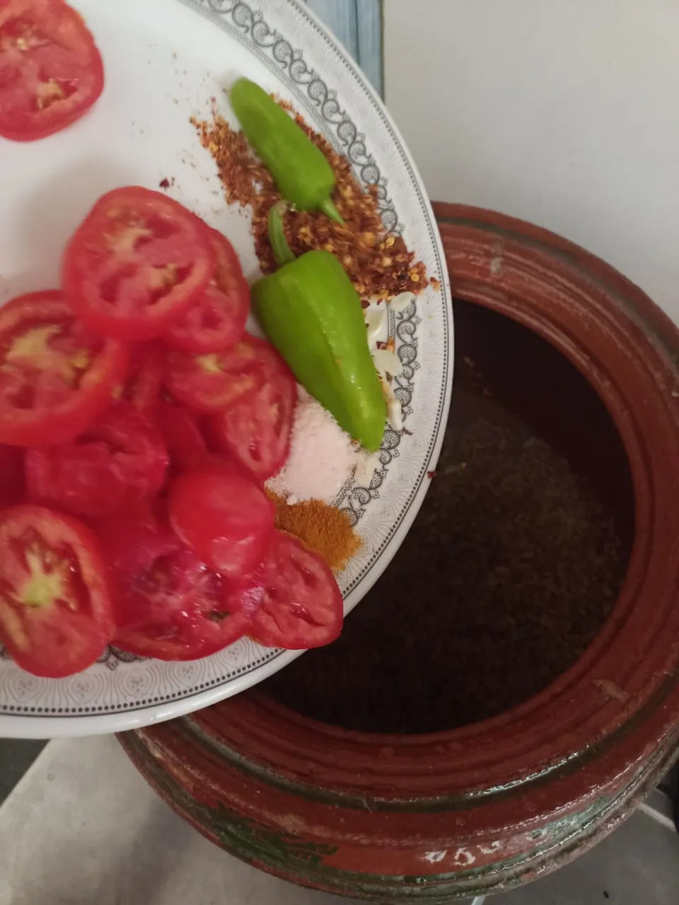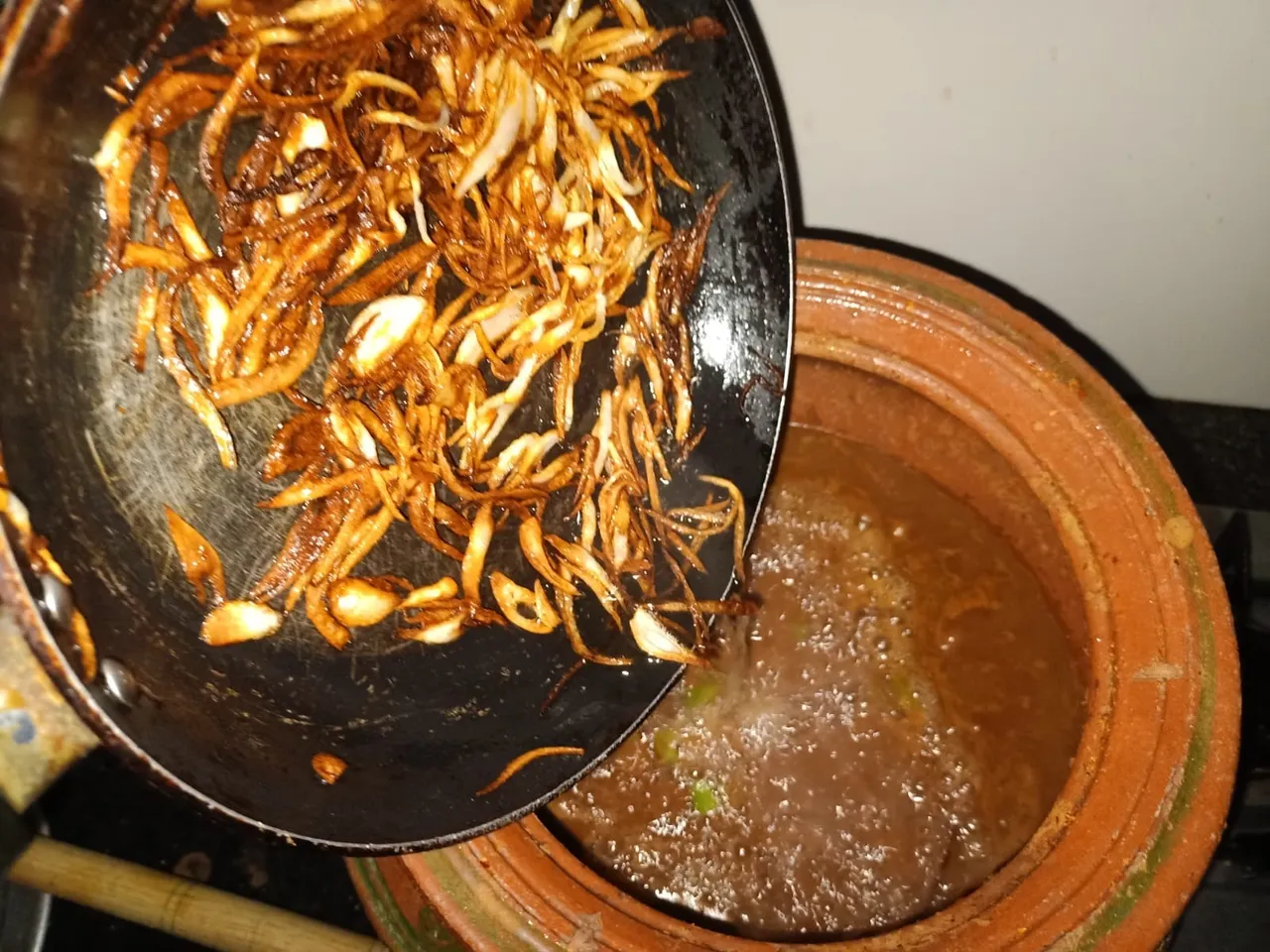 PUt these brown onions in the boiled #rawan kept in the clay pot.