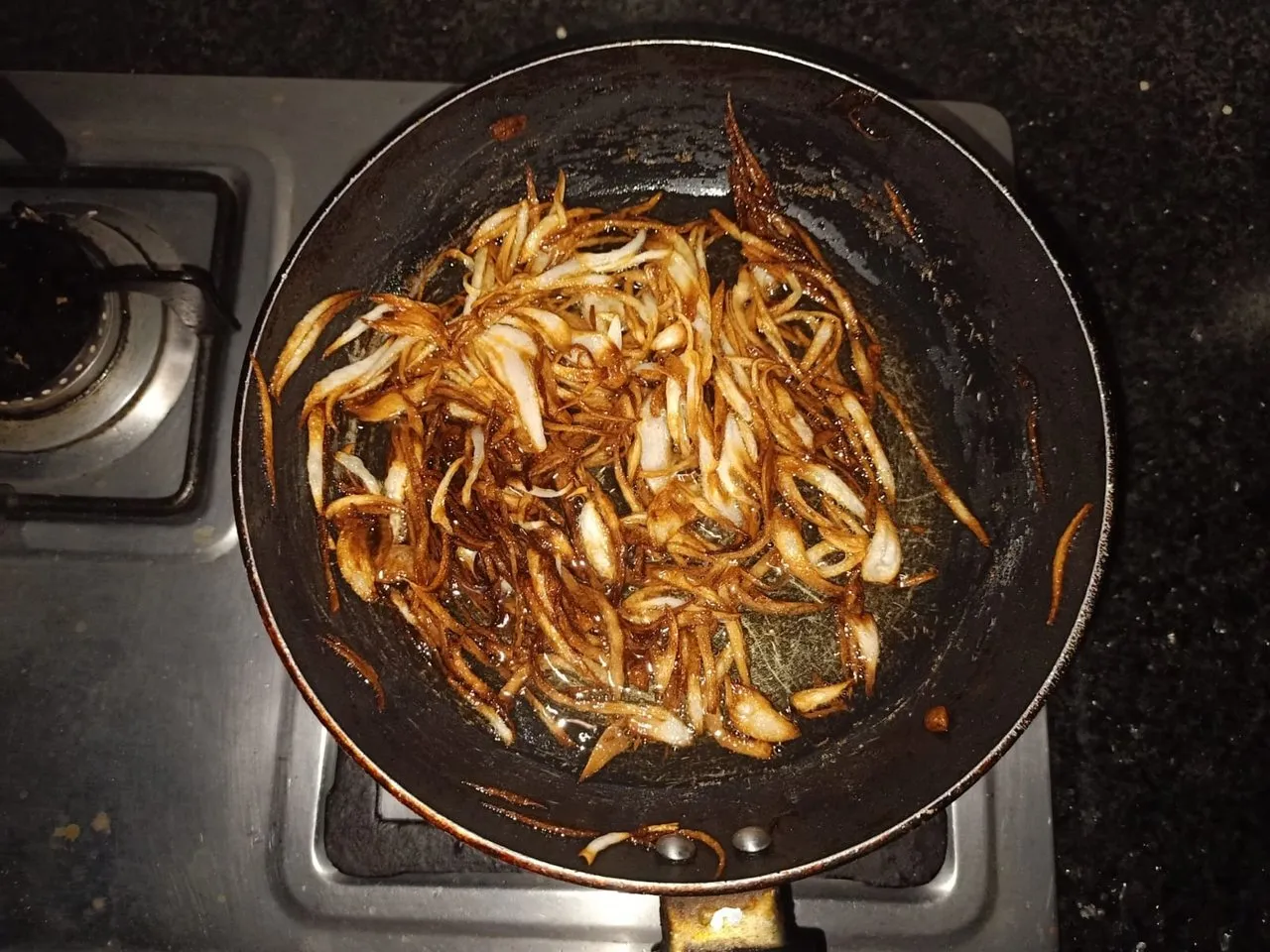 Make sure that onions don't turn black otherwise the taste of #rawan lentils will be bad.
