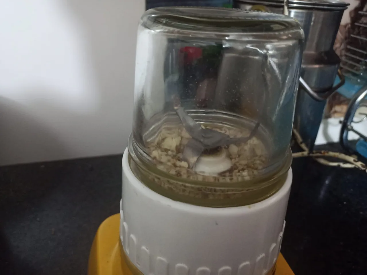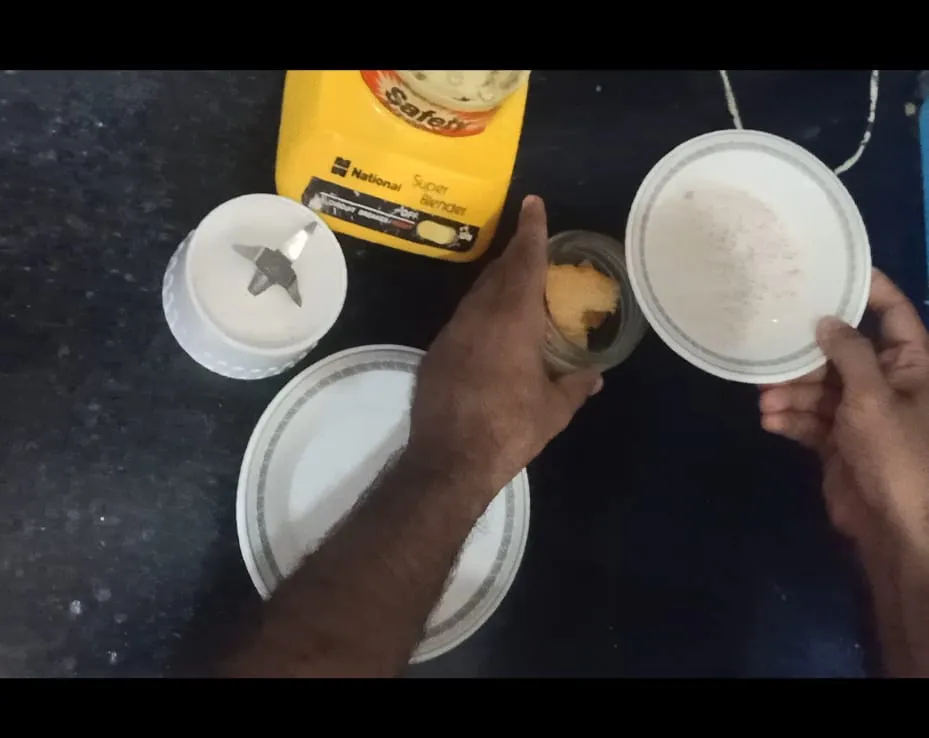 You can also do it in two steps, in the first step, crush the cake rusk alone in the grinder and mix the rice afterword or you can also do this by putting them together in the grinder.