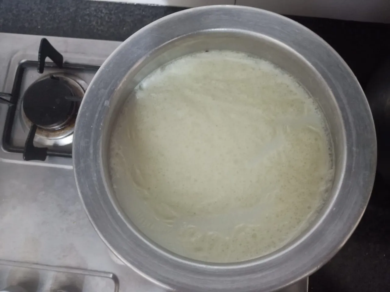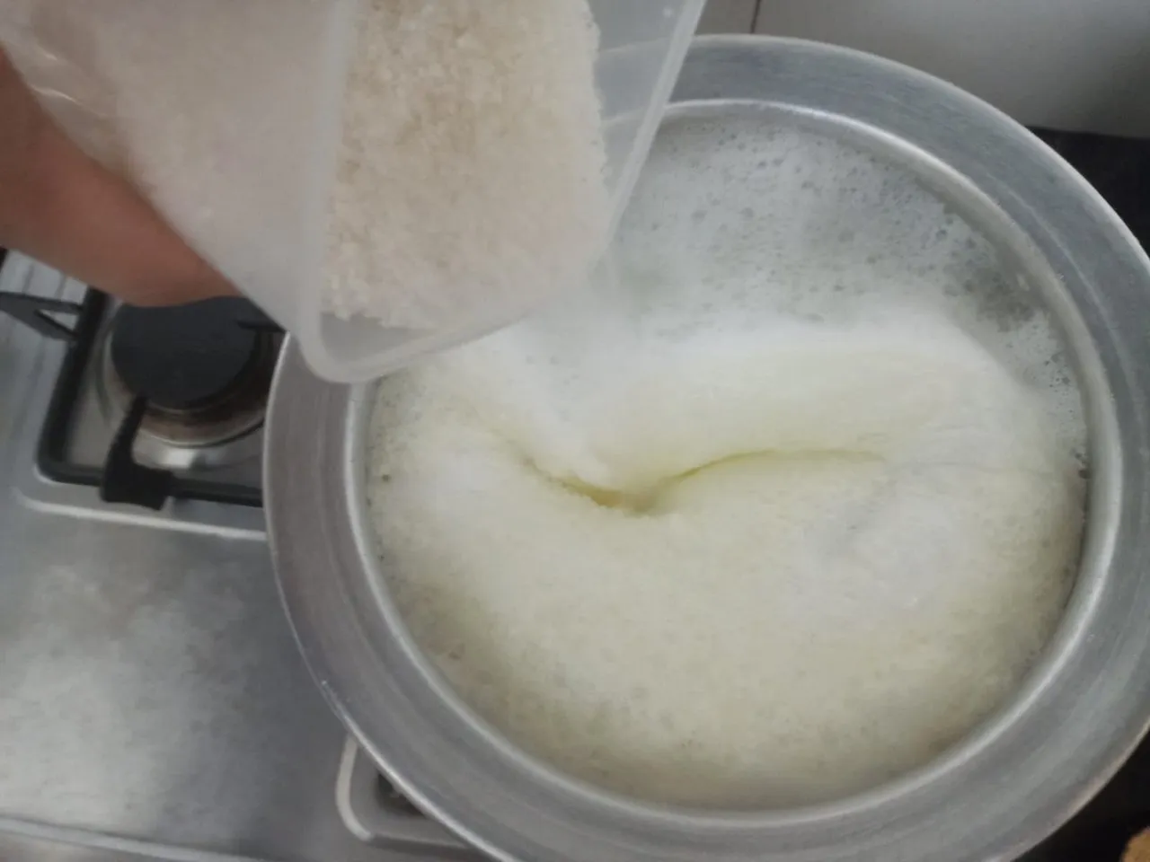 Now put the rice and cake rusk paste in the milk and mix it well.