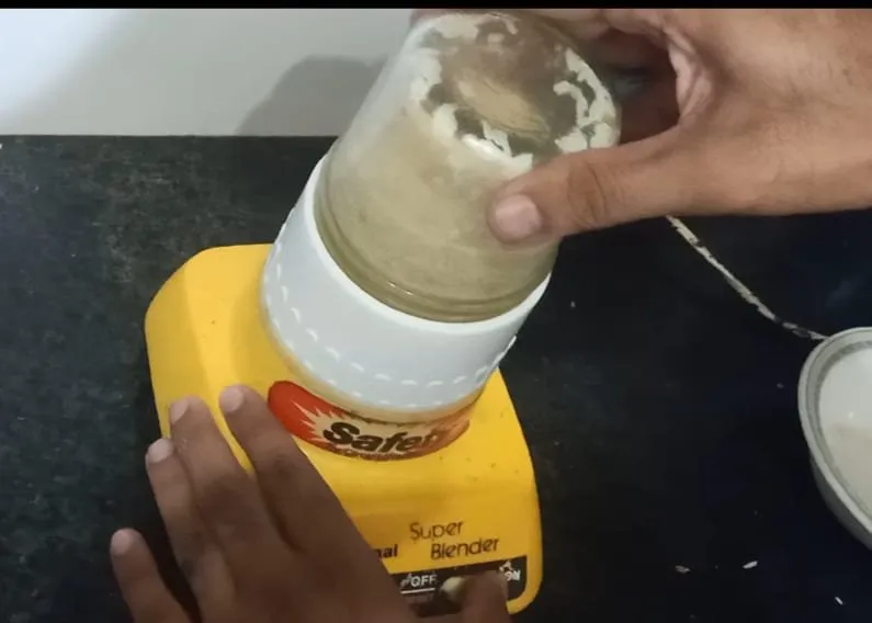 after two hours, Bring 2 cake rusks and crush them with rice in the grinder to make a paste.