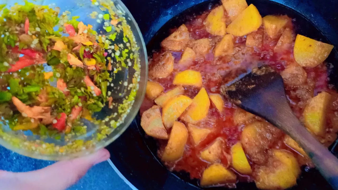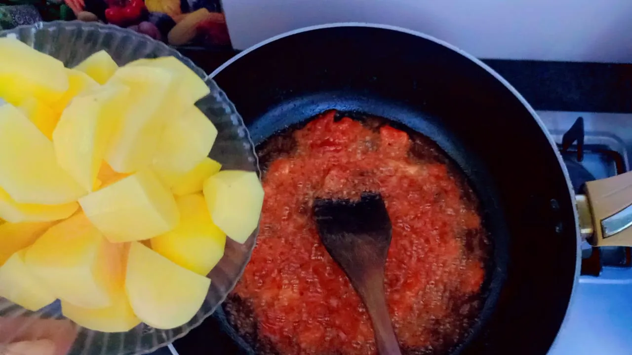 and add them to the cooking pot. Cook potatoes for almost 5 minutes.