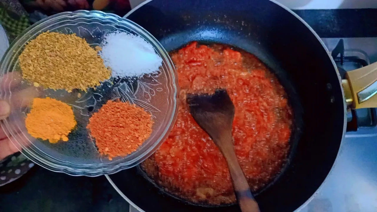 Add them to the cooking pot. Cook them for 5 minutes until the tomatoes get softened.
