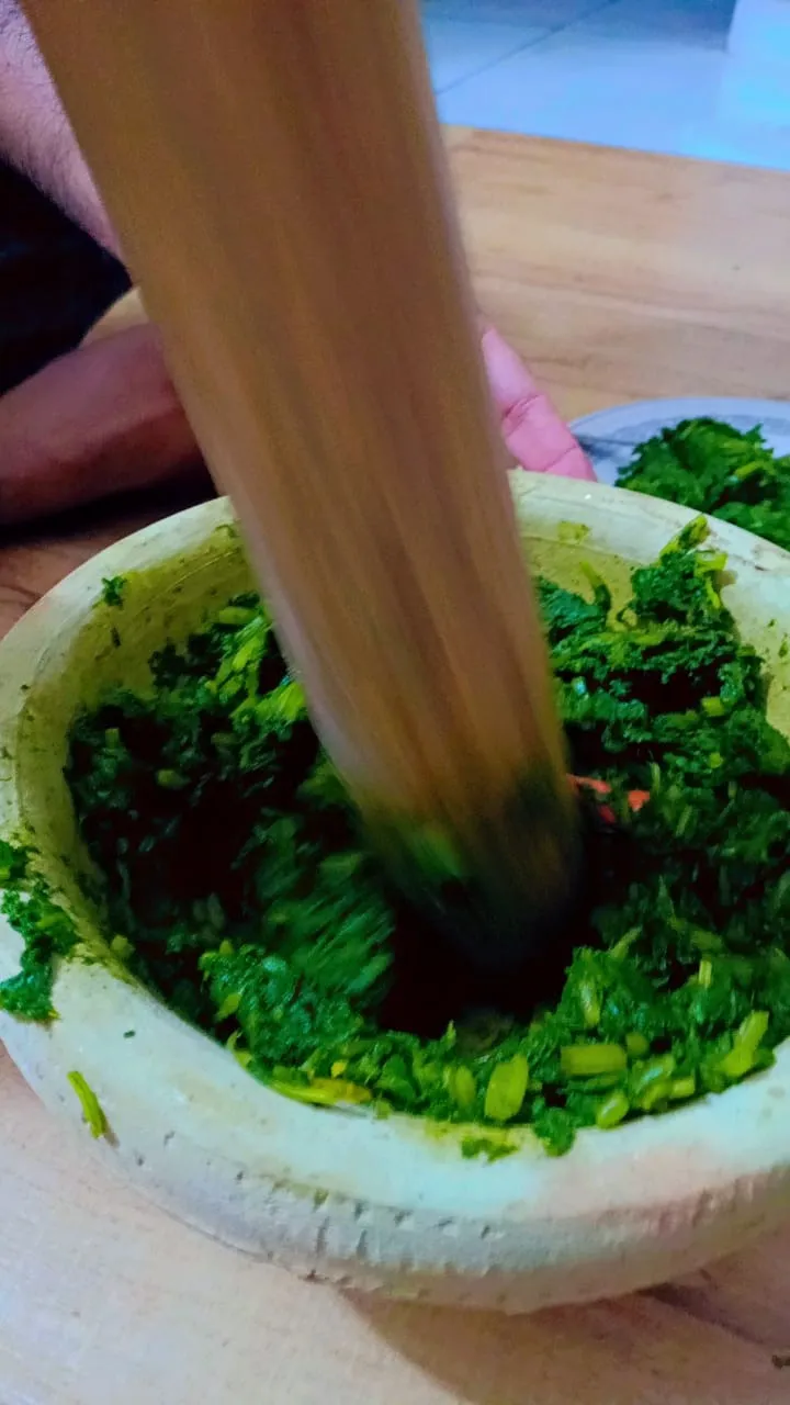 Now grand it with Wooden Pestle, As you can see in the picture.