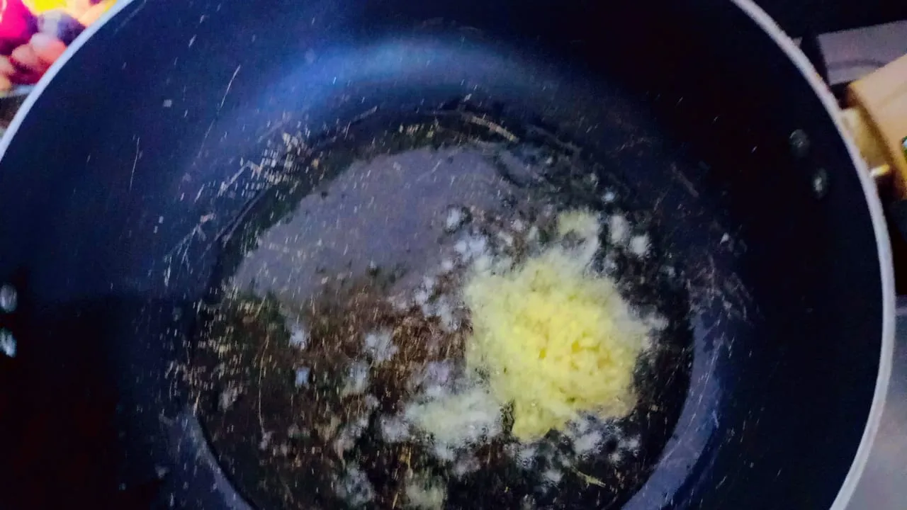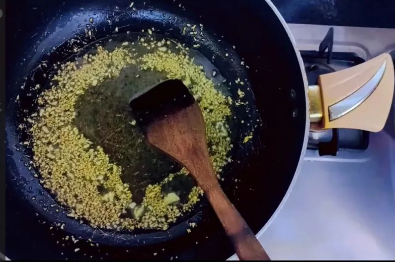 Now add Chopped Garlic to the hot oil in the cooking pot.