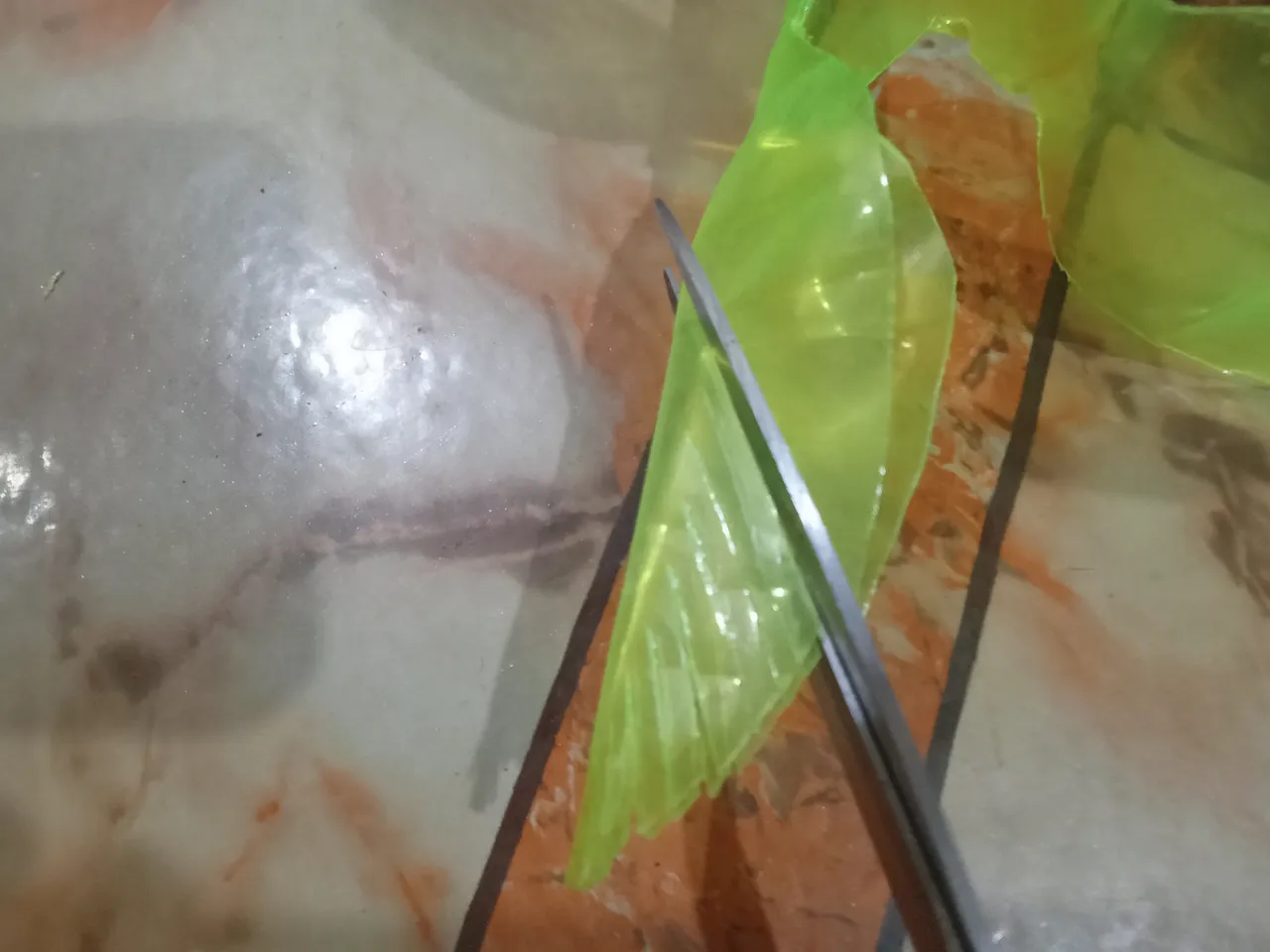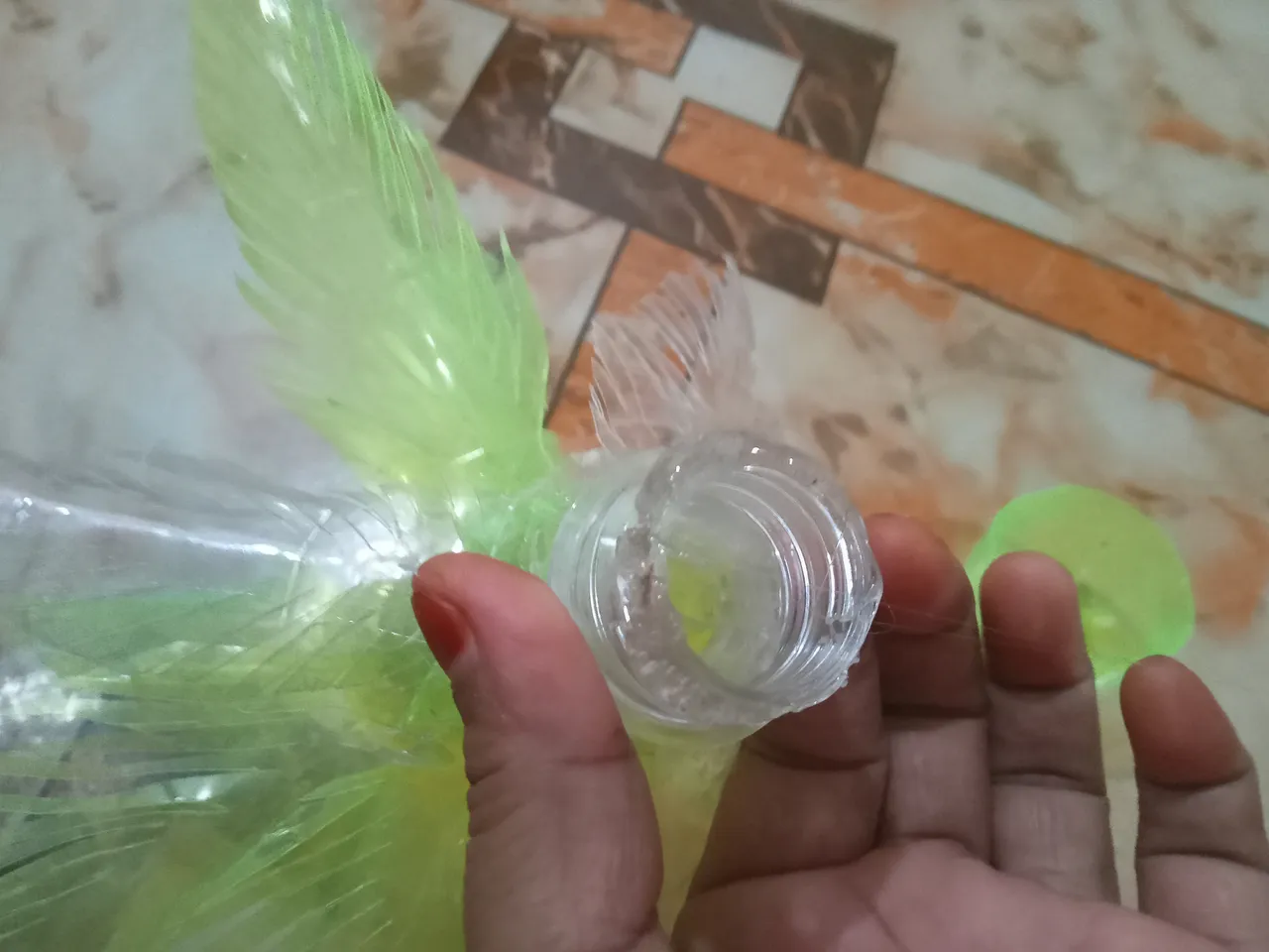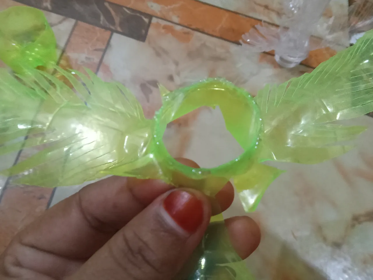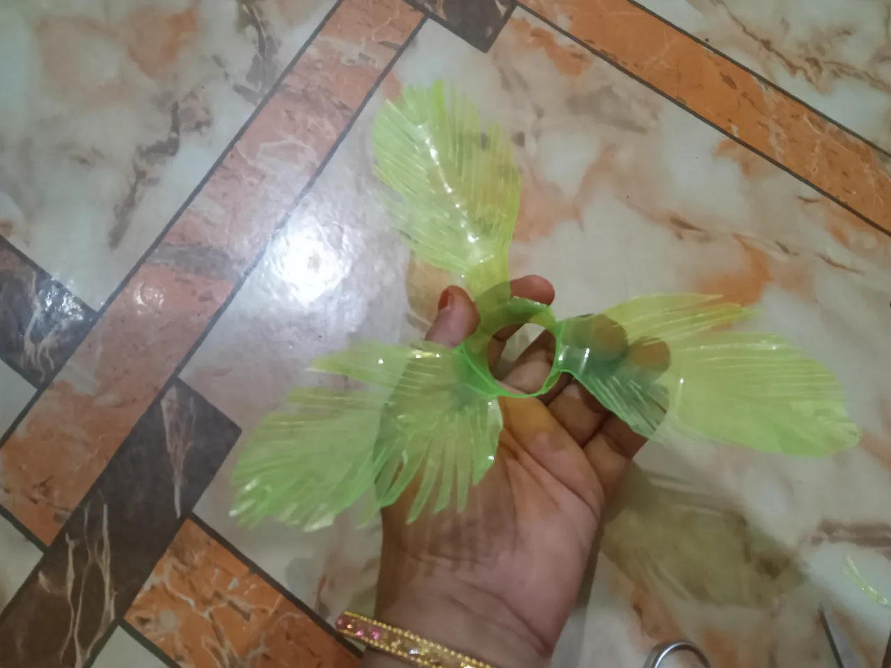 Then I cut them from the lower side again with scissors and gave them a leaf shape, thus making three bottles.