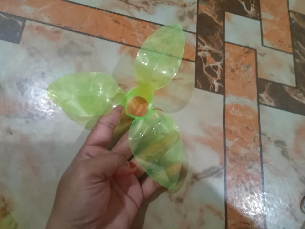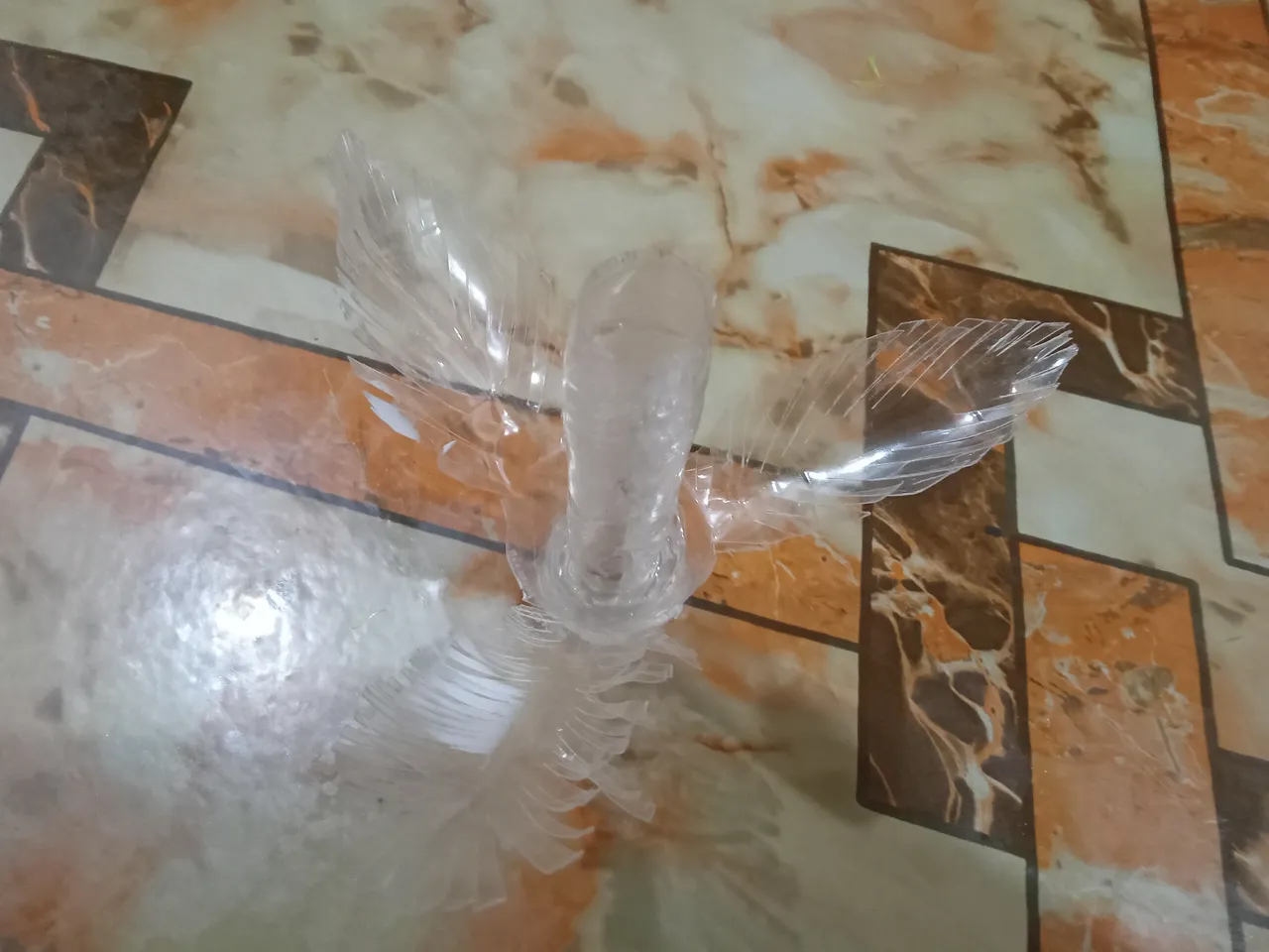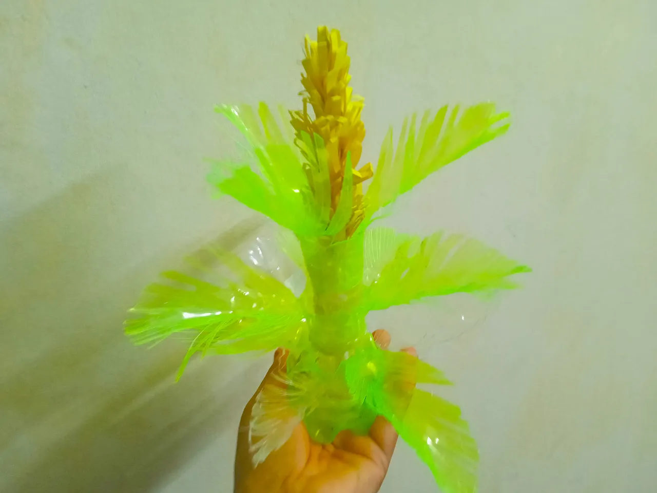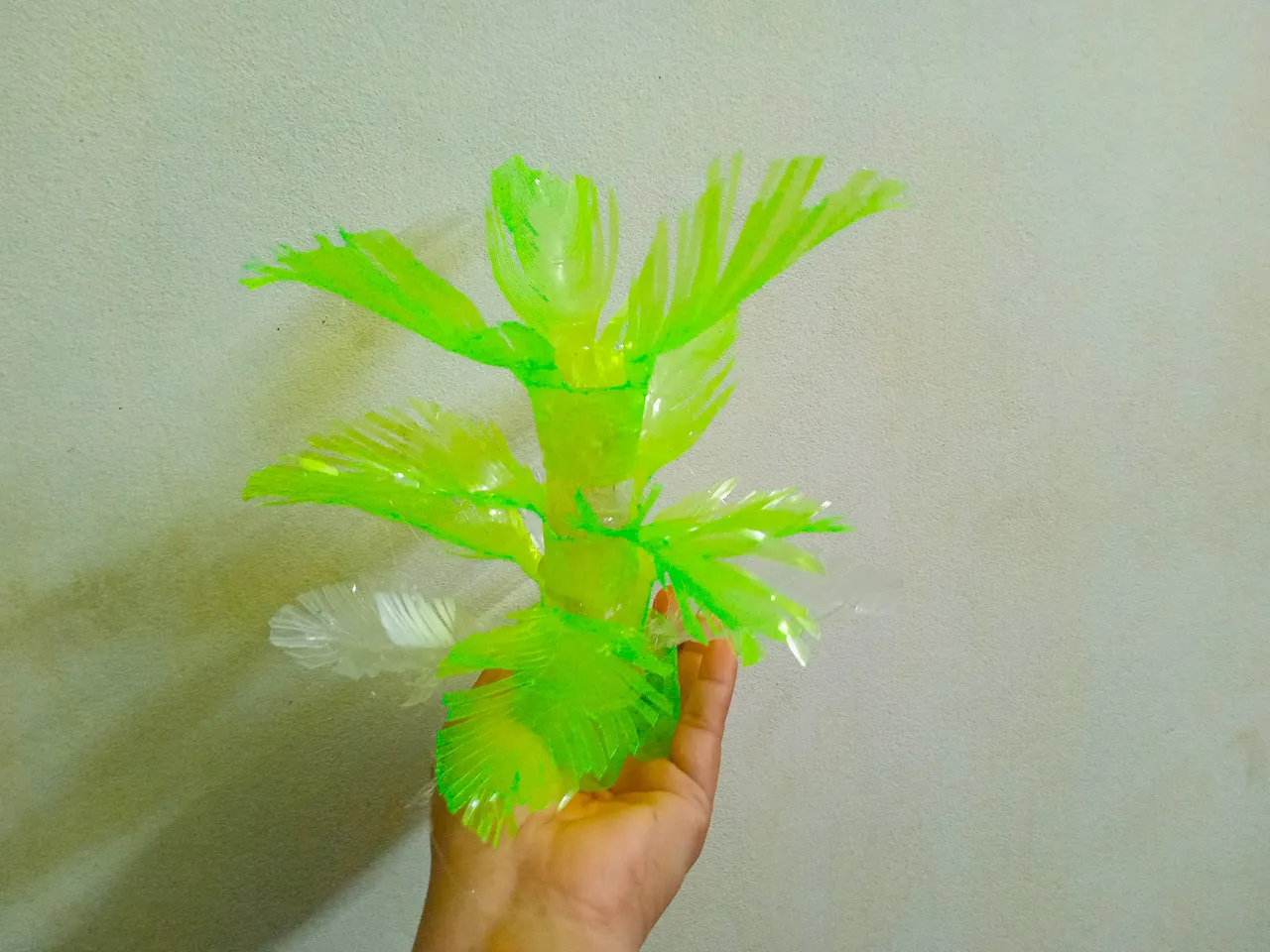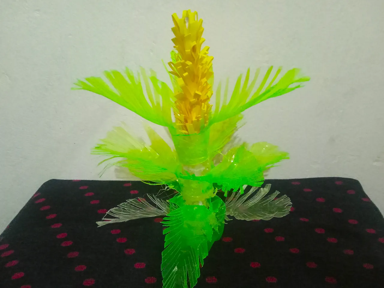Then I took a white waste water bottle, cut the top of it and made it like a pipe by applying glue. Then I made the lower part like the previous fair leaf and glued the pipe on top of it.
