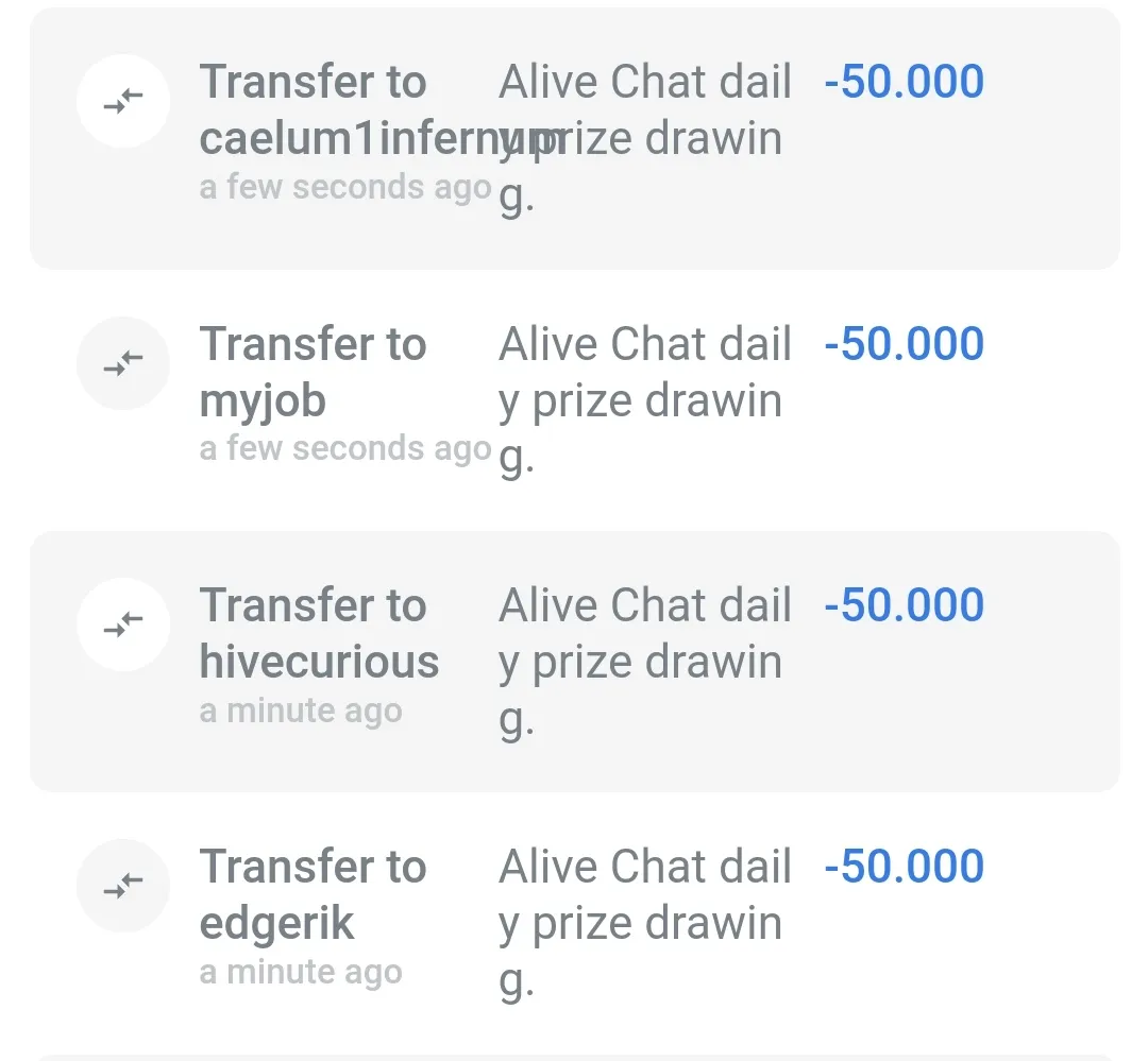 This is the daily prize drawing for Alive Chat for today, and we have 4 winners each day, and this is the prizes they get.