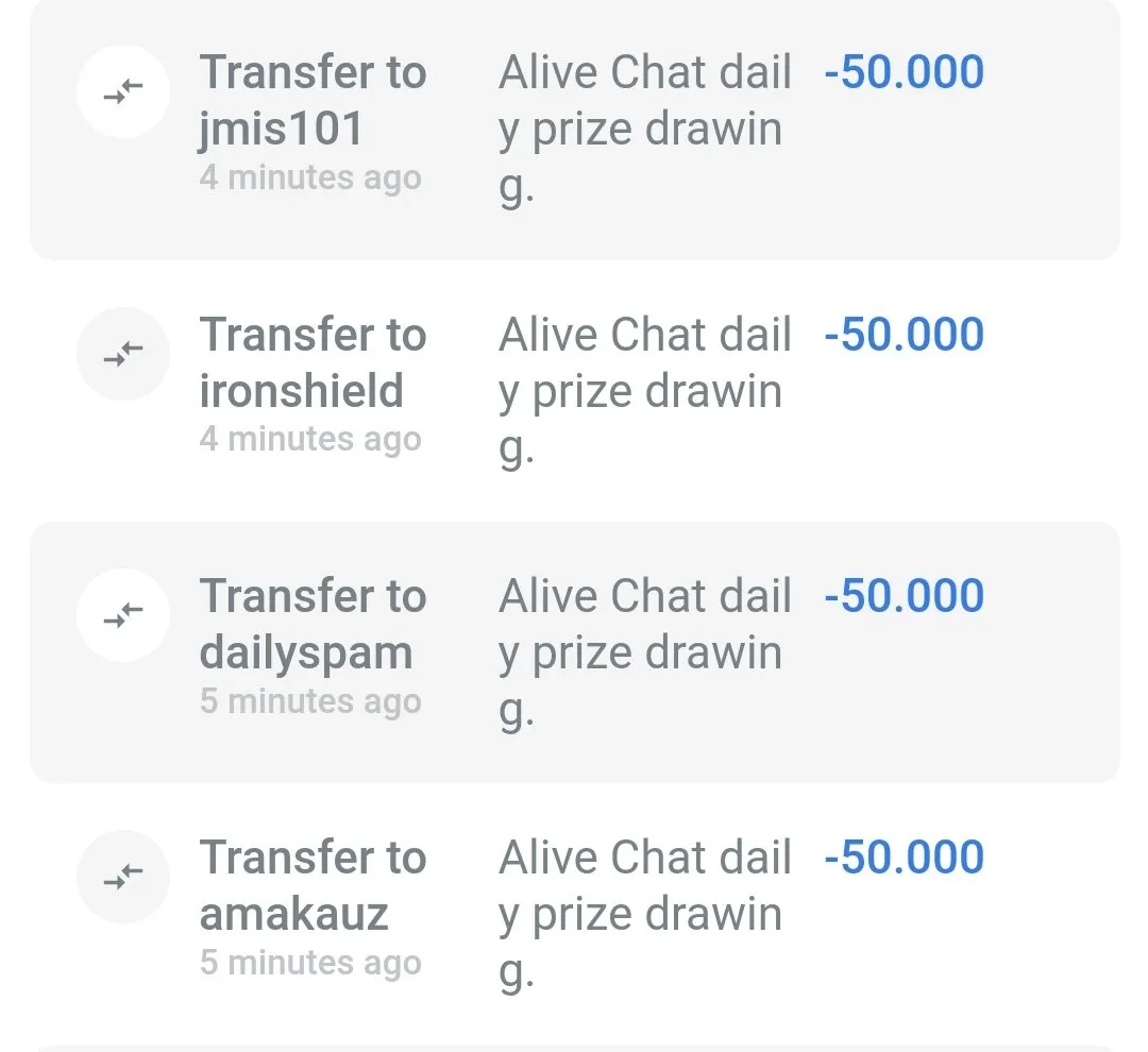 This is the daily prize drawing for Alive Chat for today, and we have 4 winners each day, and this is the prizes they get.