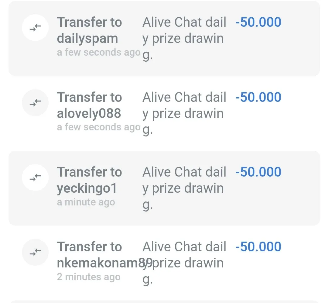 This is the daily prize drawing for Alive Chat for today, and we have 4 winners each day, and this is the prizes they get.
