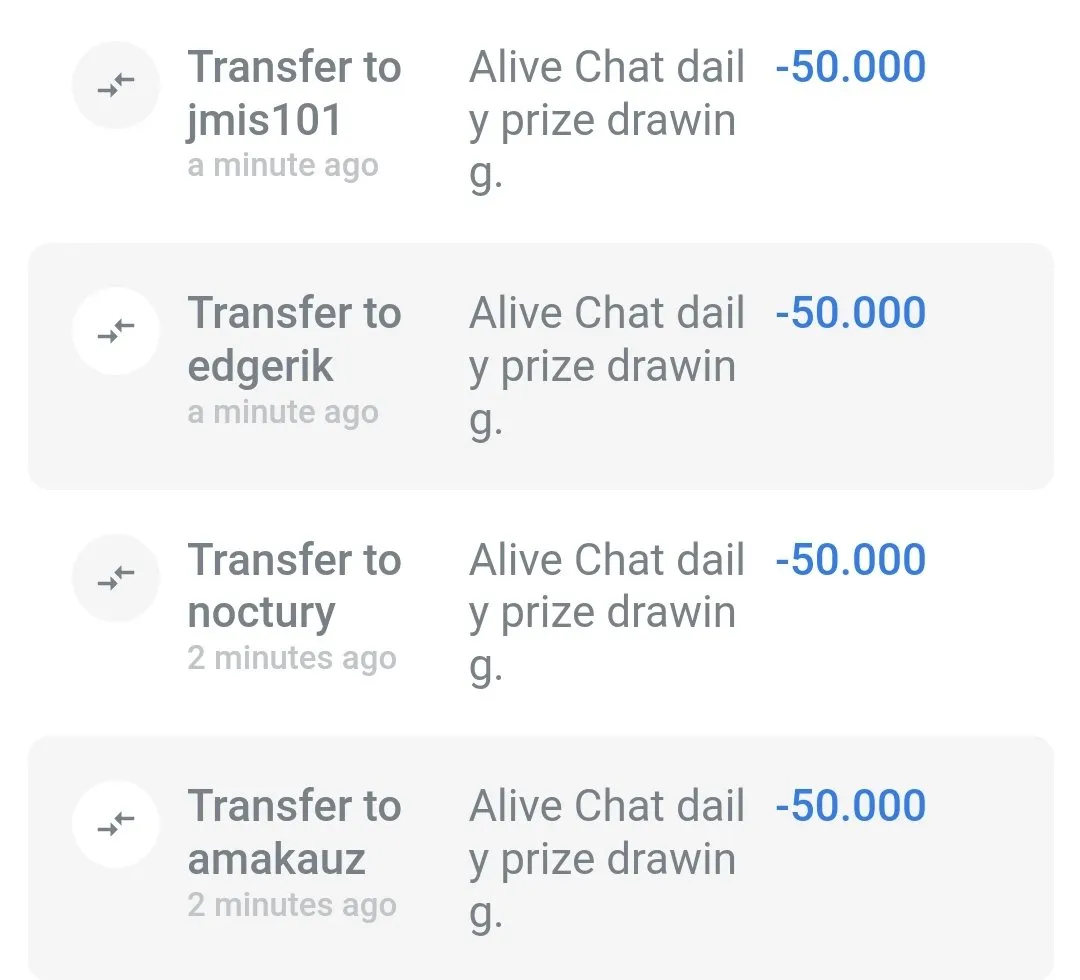 This is the daily prize drawing for Alive Chat for today, and we have 4 winners each day, and this is the prizes they get.