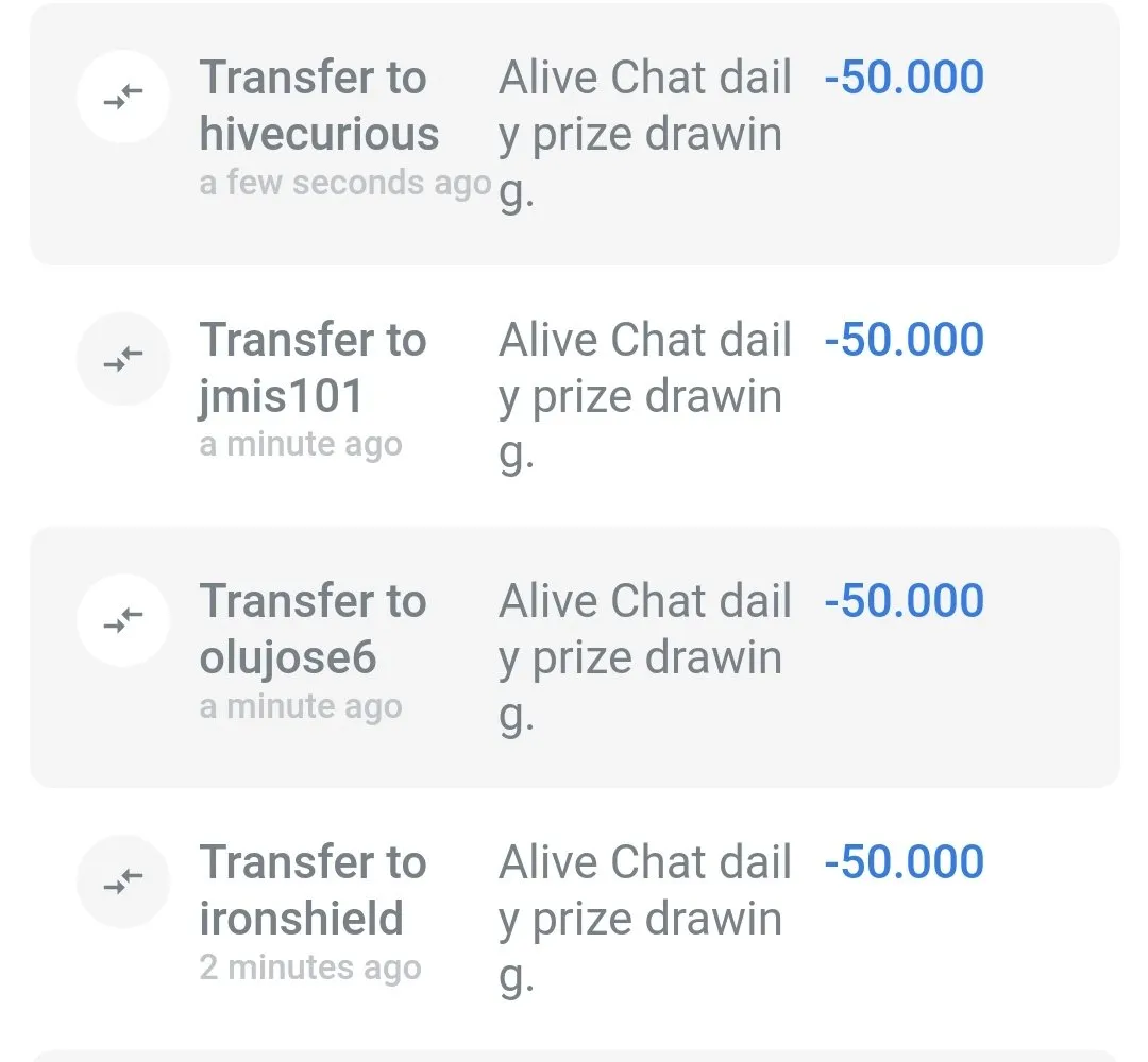 This is the daily prize drawing for Alive Chat for today, and we have 4 winners each day, and this is the prizes they get.