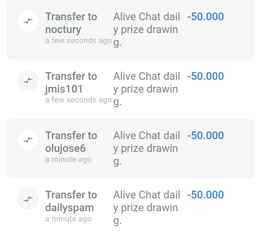 This is the daily prize drawing for Alive Chat for today, and we have 4 winners each day, and this is the prizes they get.