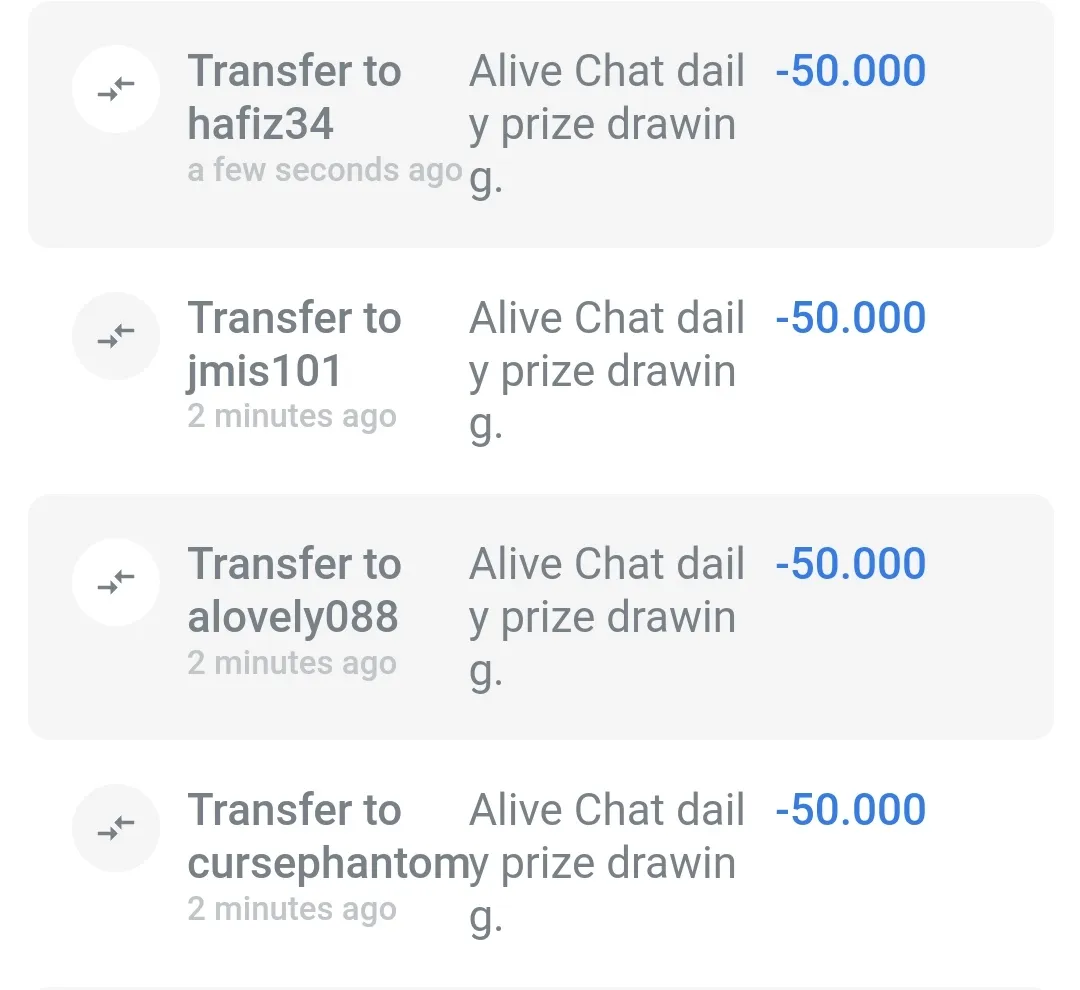 This is the daily prize drawing for Alive Chat for today, and we have 4 winners each day, and this is the prizes they get.