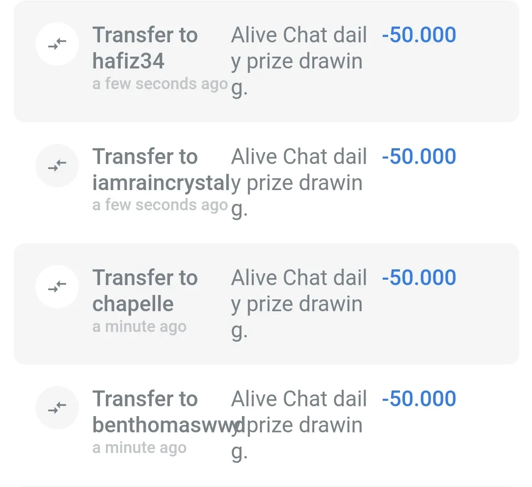 This is the daily prize drawing for Alive Chat for today, and we have 4 winners each day, and this is the prizes they get.