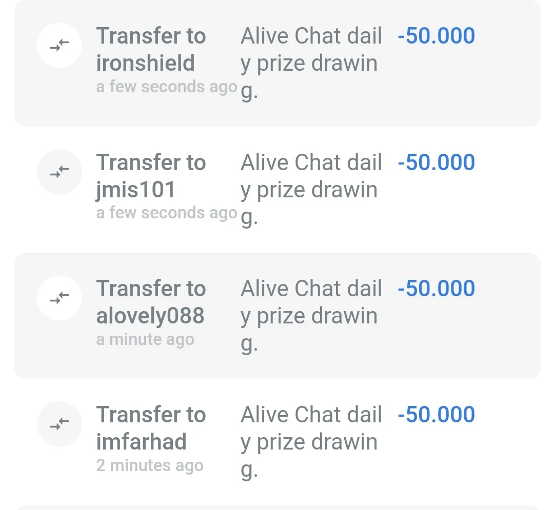 This is the daily prize drawing for Alive Chat for today, and we have 4 winners each day, and this is the prizes they get.