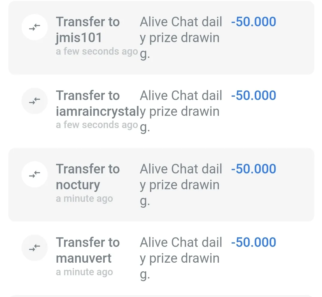 This is the daily prize drawing for Alive Chat for today, and we have 4 winners each day, and this is the prizes they get.