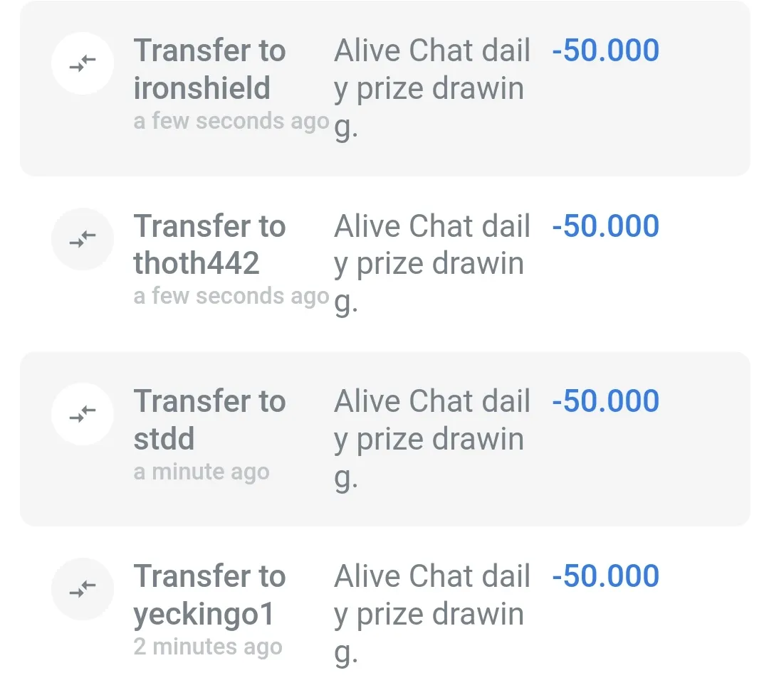 This is the daily prize drawing for Alive Chat for today, and we have 4 winners each day, and this is the prizes they get.
