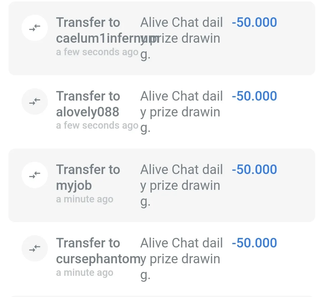 This is the daily prize drawing for Alive Chat for today, and we have 4 winners each day, and this is the prizes they get.