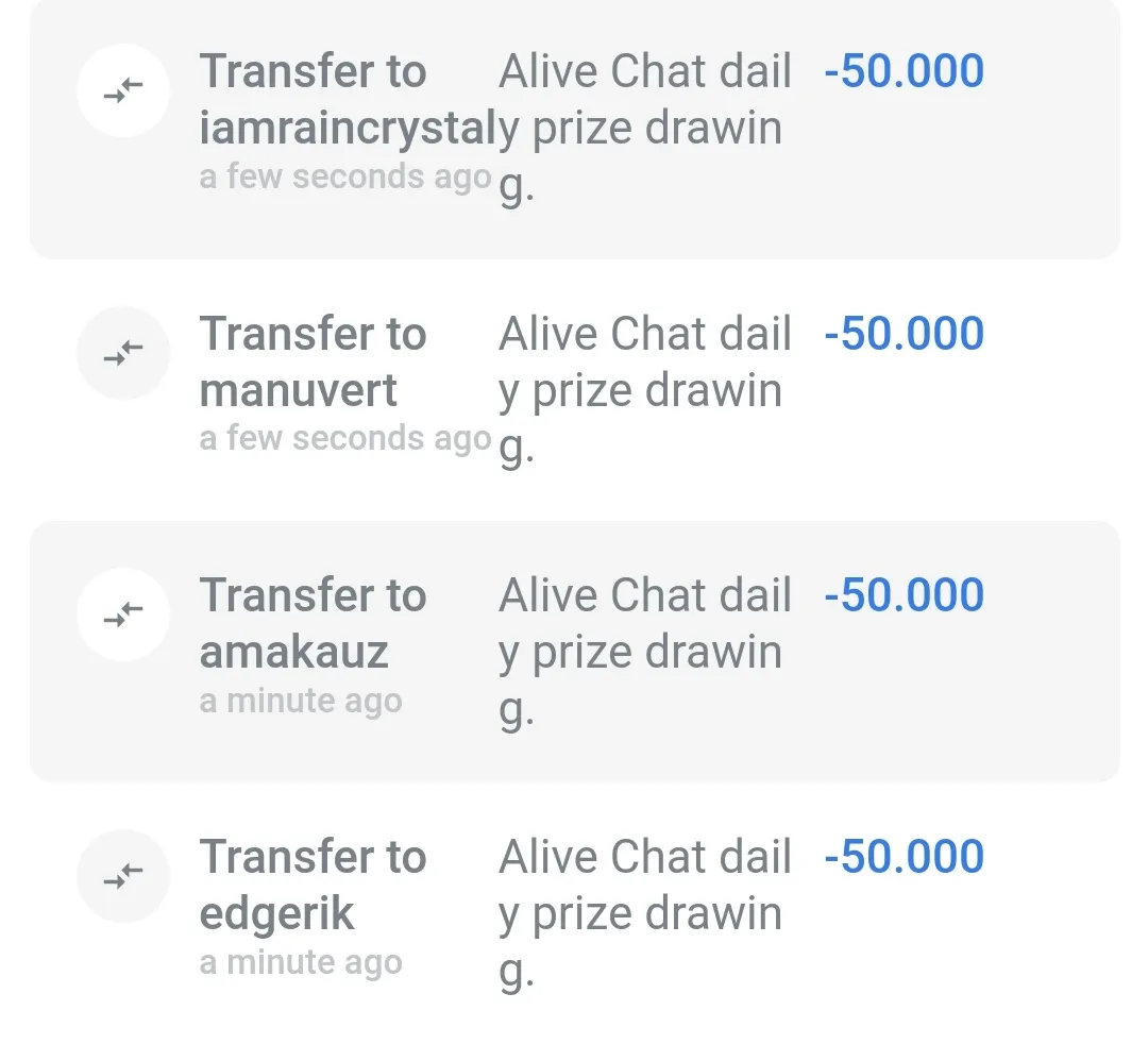 This is the daily prize drawing for Alive Chat for today, and we have 4 winners each day, and this is the prizes they get.