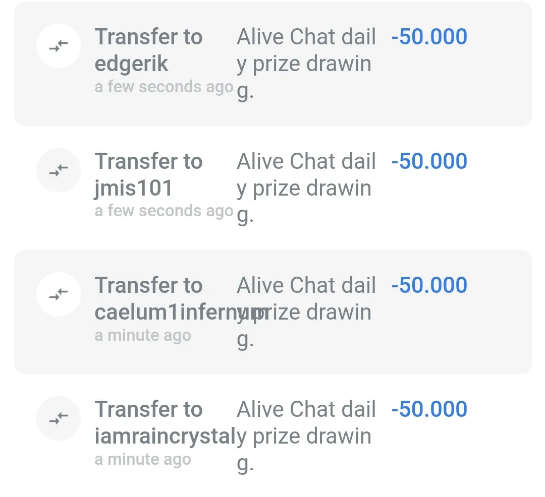 This is the daily prize drawing for Alive Chat for today, and we have 4 winners each day, and this is the prizes they get.