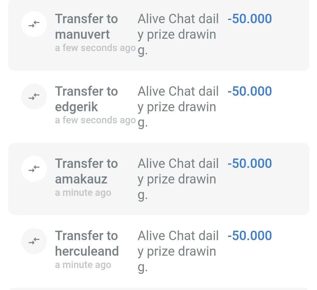 This is the daily prize drawing for Alive Chat for today, and we have 4 winners each day, and this is the prizes they get.