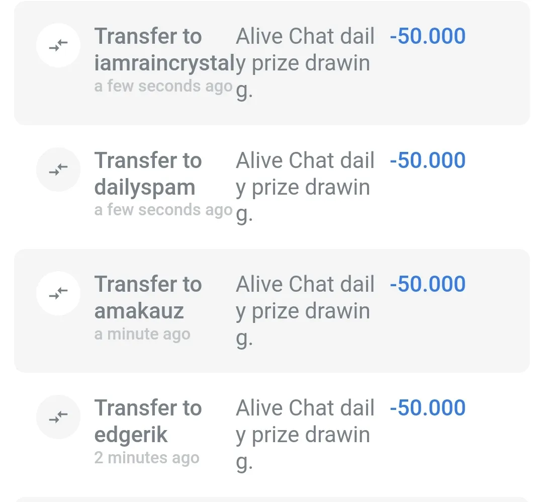 This is the daily prize drawing for Alive Chat for today, and we have 4 winners each day, and this is the prizes they get.