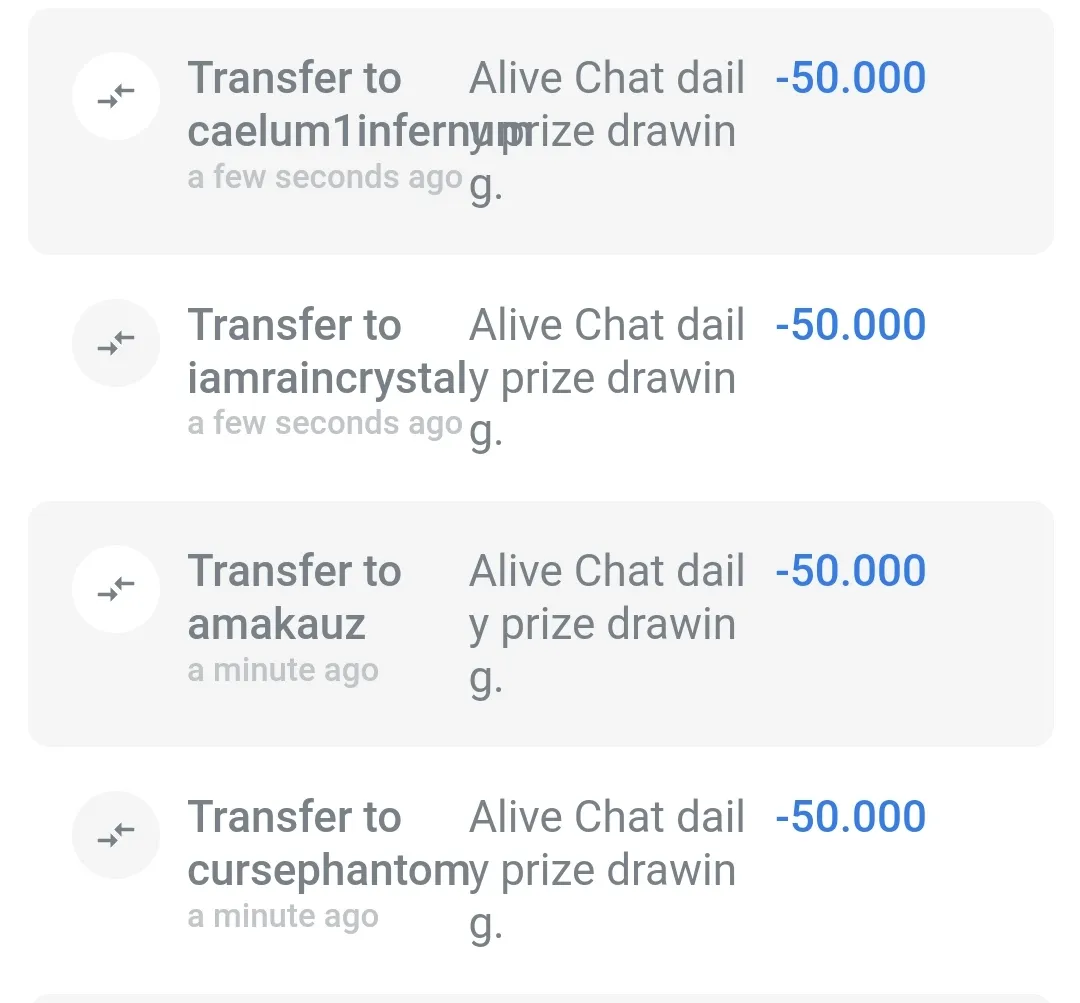 This is the daily prize drawing for Alive Chat for today, and we have 4 winners each day, and this is the prizes they get.