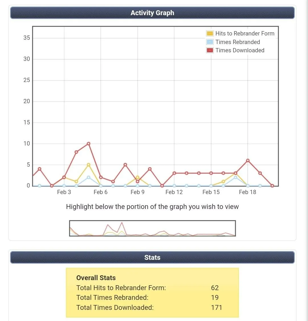 The ebook has been downloaded 171 times, and it has been rebranded 19 times.