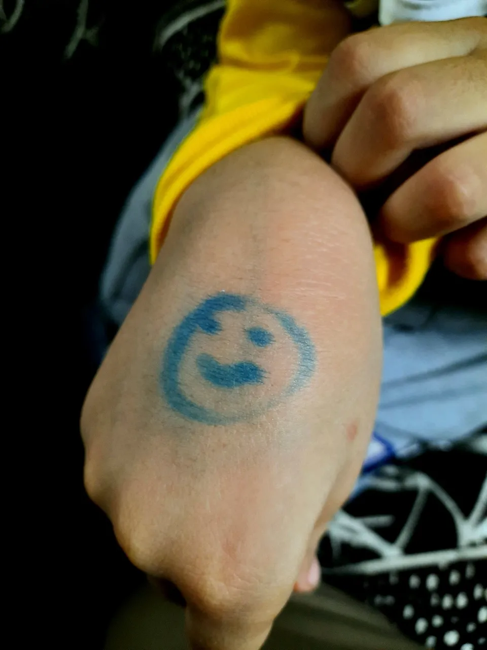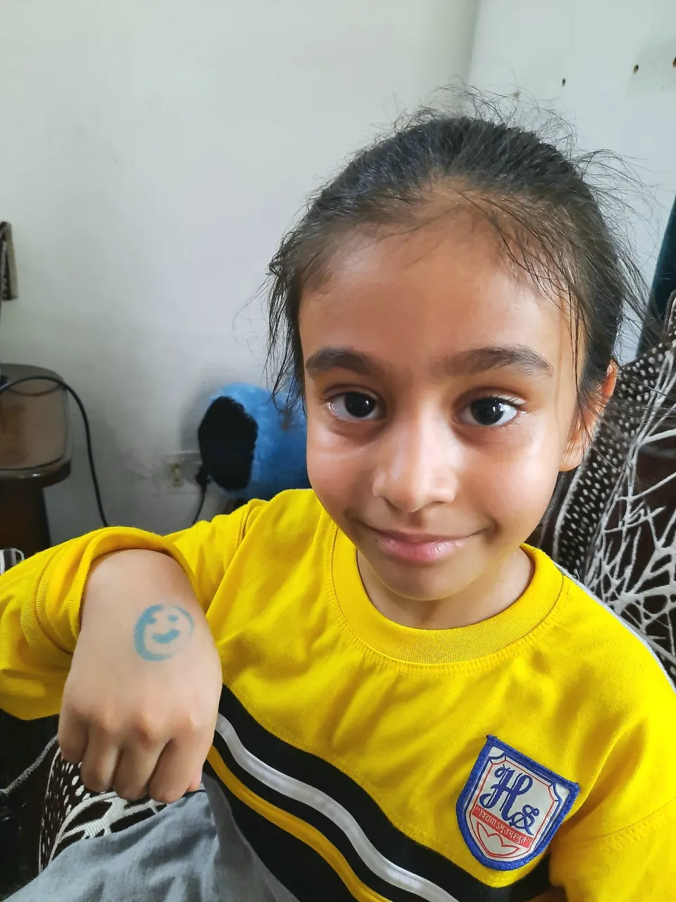 Last day in school was very important, teacher took a test of Hindi language. Gurseerat done a good job and to apprised same teacher draw a smile face on her hand. When she comes back from school first thing she shown the smile face to us. She was to excited to tell us that she done well in test. I am proud if you my kido.