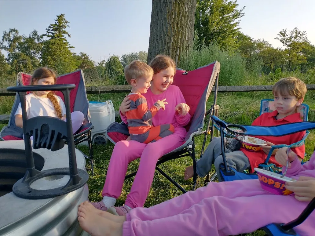 The first evening camping is always the most difficult. Once we get past that first night, it usually improves. Our youngest would not go to sleep, he cried and cried. We realized later it was the "bugs". He was crying because mosquito were biting, but we didn't realize it at the time.