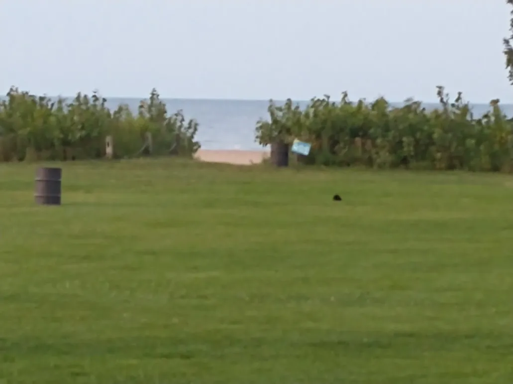 During our walk, we had another skunk siting. It was the baby skunk and he was far away from us (thankfully). I managed to snap a photo of a distant baby skunk by the beach.