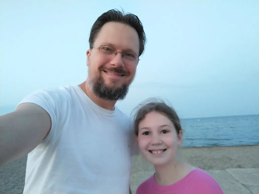 When I came back to camp, it was no longer dark. My oldest daughter got up. She also got very little sleep. I asked her if she would like to go for a walk to the beach. She said sure.