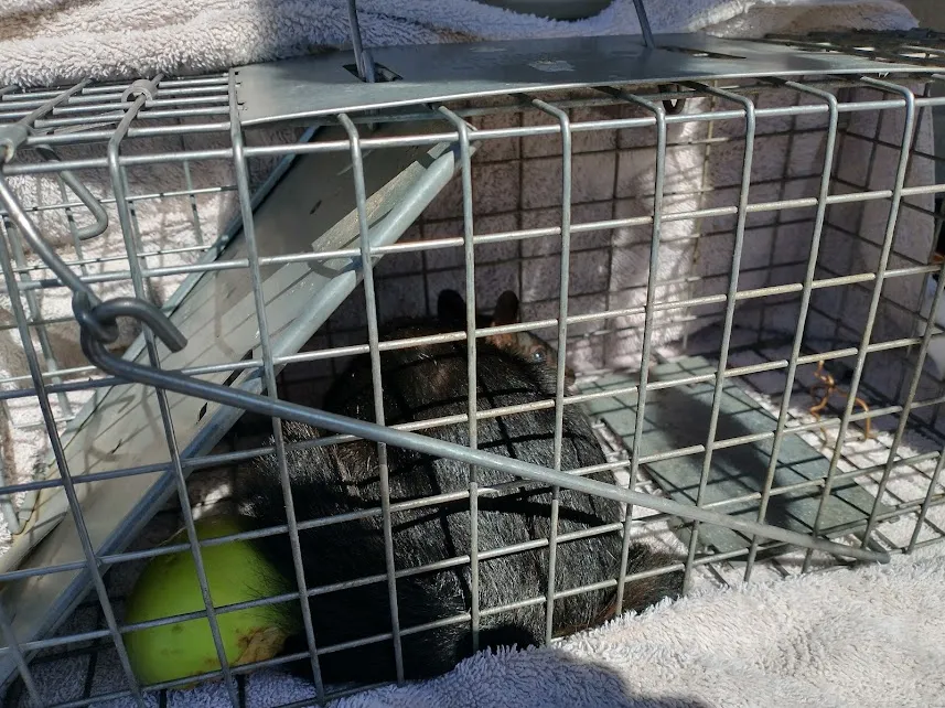 First thing, we found the trap with another squirrel - this one has been a rascal. We've watched him grab more than one apple from our tree, so we relocated him to Squirrel Paradise.