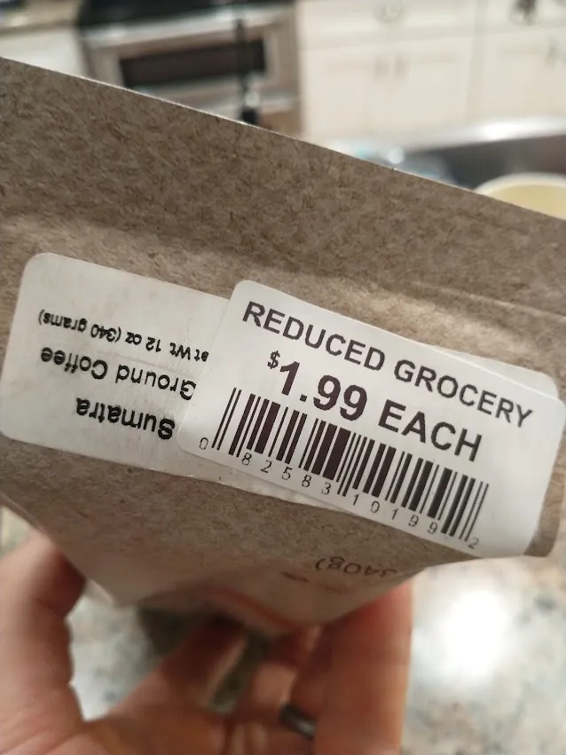 I found 12 oz ground coffee for $2.00 which is an astounding price per oz for coffee. That's $0.165 per oz. Premium coffee is usually between $0.40 - $0.50 per oz, while "cheap" coffee is usually $0.25 - $0.30 / oz. I tried the coffee this morning and it was YUMMY!