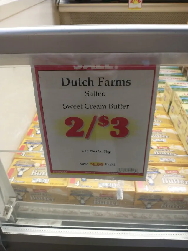 Today, I saw something I don't think I've EVER seen, since monitoring food prices. IF we can find butter for under $3.00 /lb we get very excited and usually stock up. A few years back we bought 12lbs of butter for $2.50 /b. It was $30, but saved us money in the long run. We didn't buy butter for months and months.