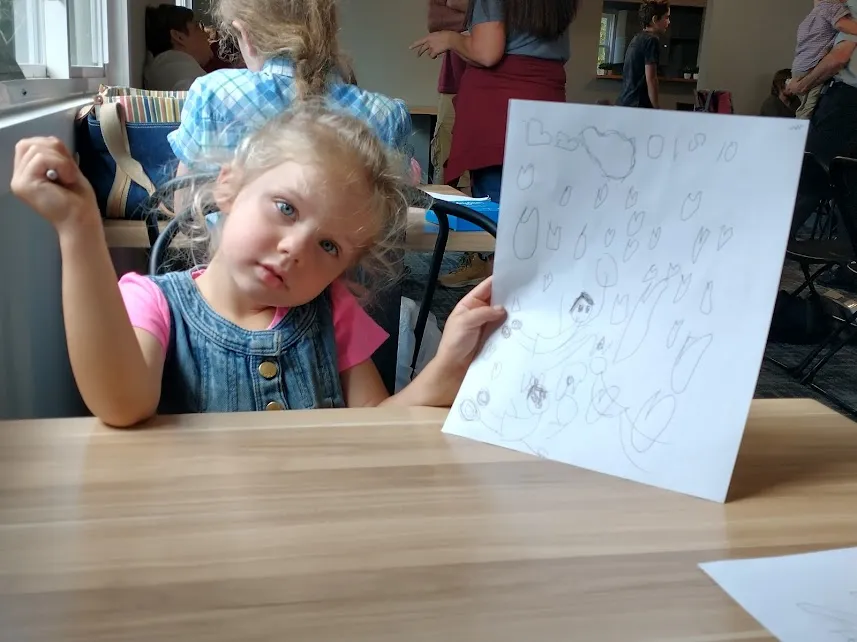 Children made drawings while the adults engaged in Torah study. It was a long and in-depth teaching that went on all the way to diner time. Pot luck in the big tent!