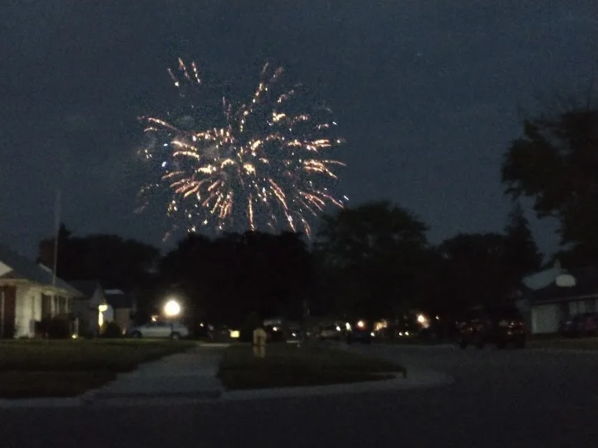 Boom, crackle, fizz. The whole neighborhood seems like it's exploding! We have about a half-dozen of our neighbors who are burning their expendable cash for everyone's enjoyment... or displeasure. We enjoy this evening's show, it's free and it's exciting!