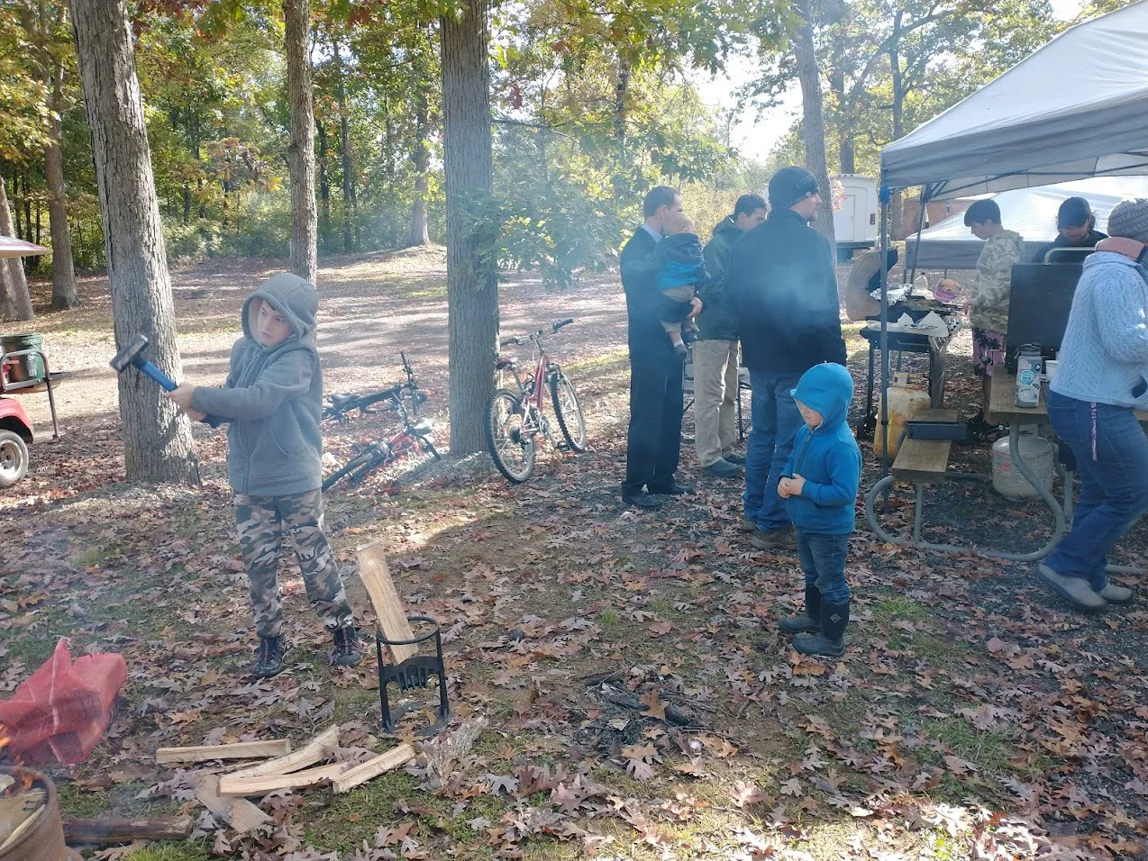 It was chilly, so the boys decided to start a campfire. The logs were big, so I brought over the kindle cracker and they had a lot of fun splitting logs with the mallot.