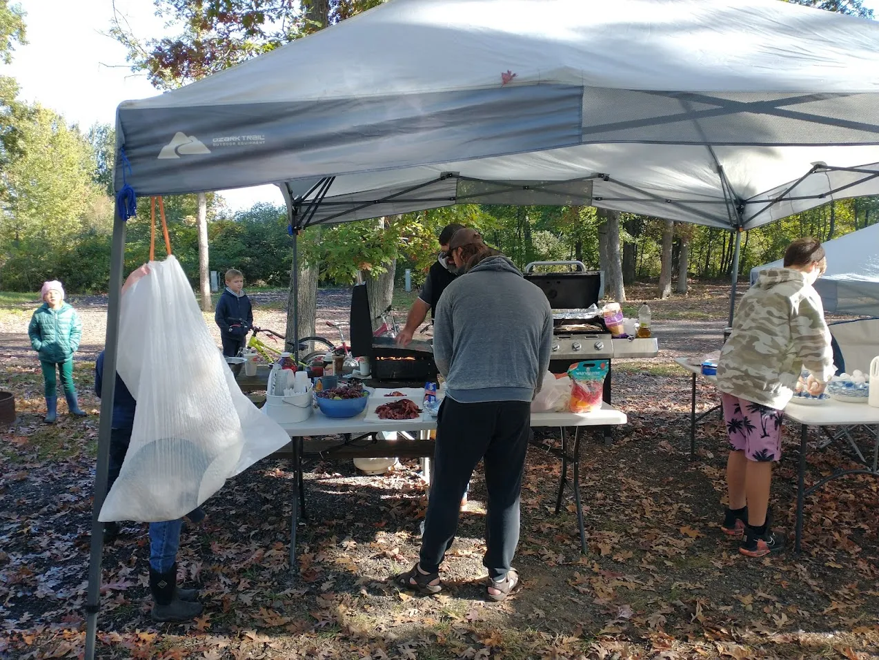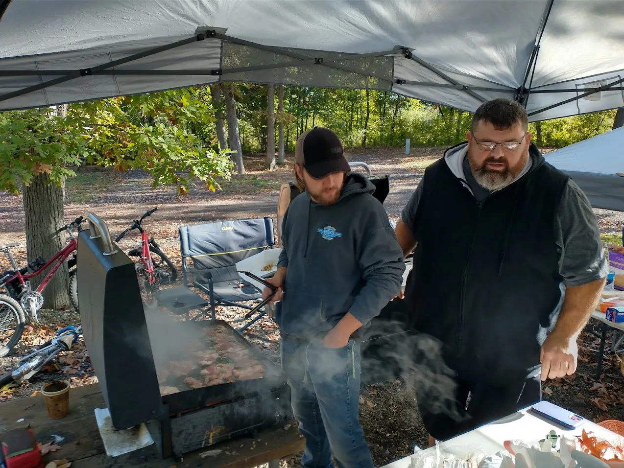Our neighbor was cooking up egg burritos and beef bacon and shared it with the entire camp. They disappeared as quickly as he made them. Delicious!