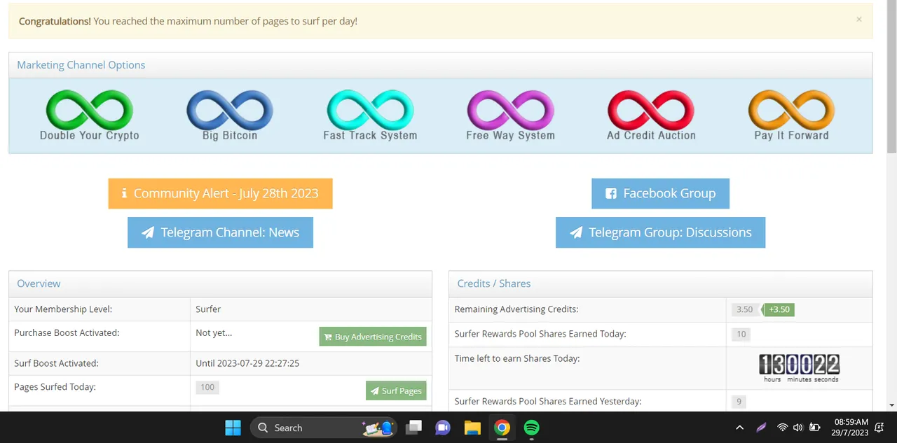 | InfinityTrafficBoost | Surf 10 ads or more |
