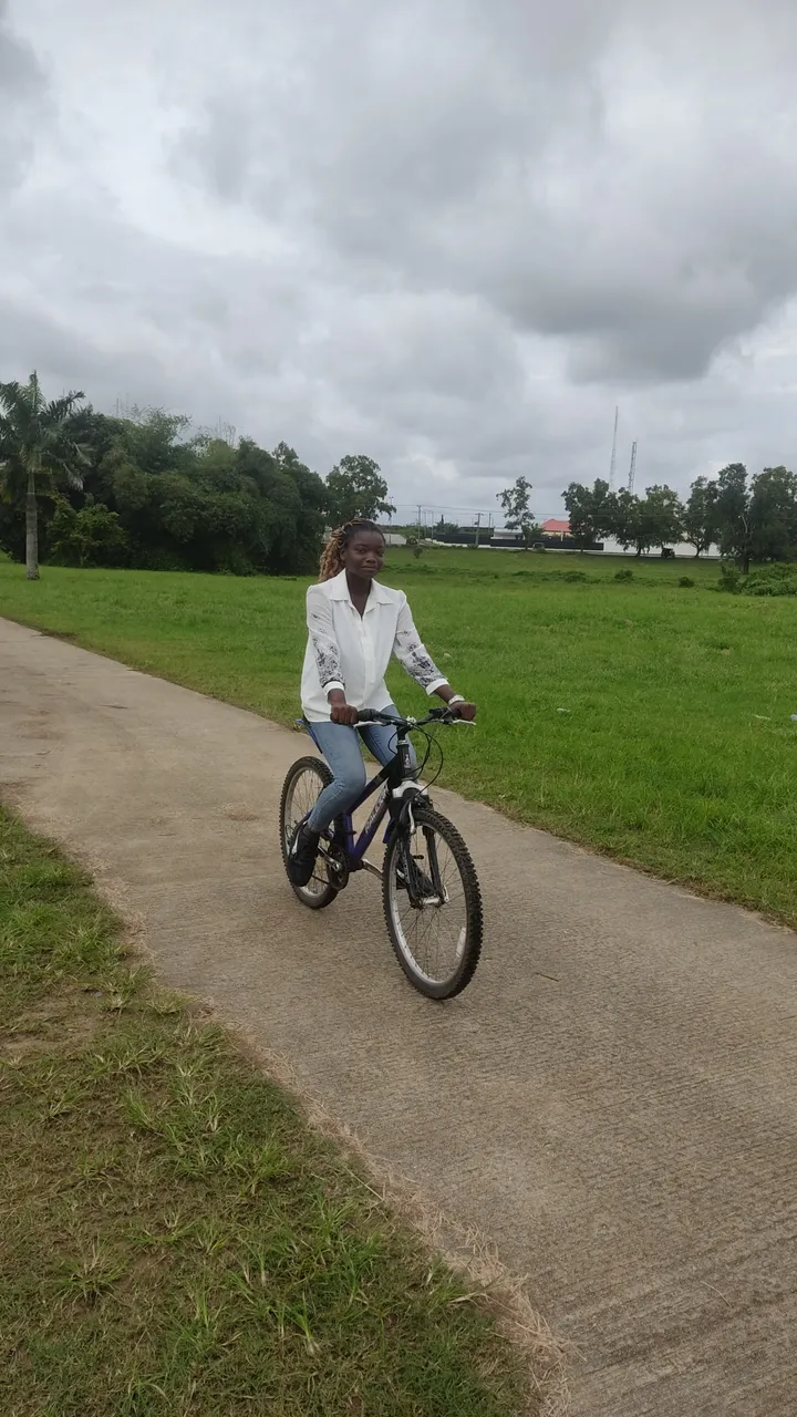 My friend and I got a bicycle from one of the athletes there and also exercised. She said, it has been a while she rode a bike.