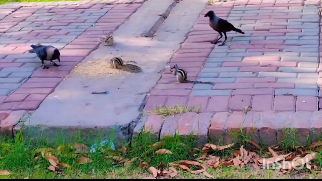 Well, we went for a walk early in the morning and this park is very crowded in the morning. The most interesting thing about it, I found, was that there was a beautiful brick place built in two places, and there was a granary system, and pigeons, squirrels and crows were eating the granary.
